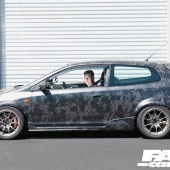 Over the years there’s been everything from a Rev Hard turbo kit, to a Jackson Racing supercharger, and even a cam’d K20A2 lurking under the ‘hood.’ Most recently, though, a fully-fettled K24A1 (basically an Accord/Civic Type-R Frankenstein build) has been the power plant of choice. With 300-odd horsepower on tap, it certainly does the job of embarrassing the odd all-American V8 on the tarmac.