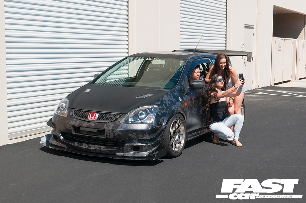 Phil has been messing with his EP3 for the best part of the last decade and, like many of us, it all started with sorting out the looks. It’s true to say that he wasn’t too happy with the car initially. Even though this one was a hell of a graduation present, the standard EP3 Si was always looked upon as a cheap, economical ‘student car’ in the US. (If only we were so lucky in the UK eh? – Initial G). Still, he’s also quick to say that he’s used nothing but his own cash, not to mention DIY skills building what we reckon to be one of the hottest examples on the West Coast… or any other coast for that matter.