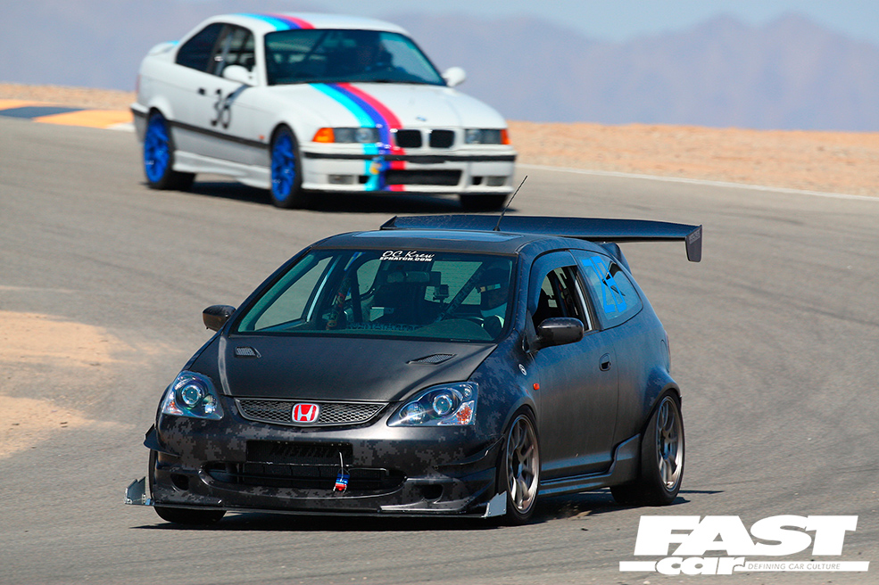 Like any good track-pounding weapon, this one is not just about sheer grunt, and perhaps that’s where this particular baby Honda (with a great deal of help from just about every chassis-stiffening part you can imagine) comes right into its own. It looks the part and goes like absolute stink, but, more importantly, it handles and stops with a well-thought out degree of perfection, too.