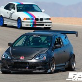 Hondata KPRO, K24A1 block bored to 88mm, JE 13.3:1 pistons, Blue Print Pro I-Beam rods, modified K20A2 oil pump, J’s Racing baffled sump, Circuit Racing timing chain guide, Hybrid Racing timing chain tensioner, ATI Street Super Damper crank pulley, Karcepts air con and power steering delete, K20A2 ported and polished head, Kelford 179-b2 cams, Blue Print VTC 40* limiter, Supertech dual valve springs, 5mm oversized valves and titanium retainers, port matched RBC intake manifold, RC 750cc injectors, Walbro 255 lph fuel pump, Skunk2 70mm throttle body, custom short ram Intake with Apexi filter, Buddy Club race header, Invidia Q300 mid-pipe, Skunk2 Mega Power backbox, Mishimoto radiator and hoses, K20A2 6-speed transmission, Wavetrac LSD, Synchrotech carbon synchros, 5.07 final drive TSX 6th gear, Clutch Masters stage-4 paddle clutch, competition 11lb flywheel, EM2 clutch master cylinder, Clubrsx shifter cable bushings and shifter box bushings