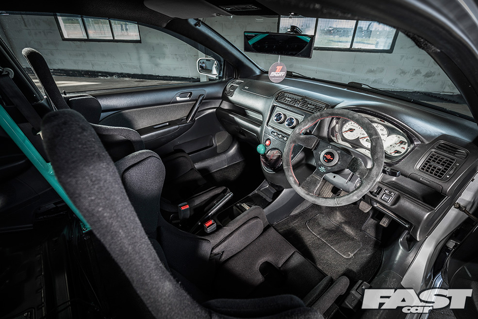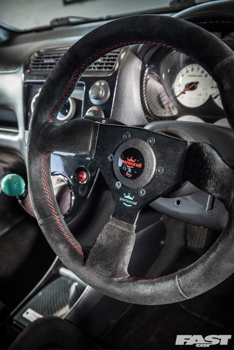 To bolster the electrifying ride, there’s an unsilenced HKS exhaust system complete with a Tegiwa manifold that unleashes plenty of howl, while the ride has been firmed up with some MeisterR coilovers and tonnes of bracing and camber arms for the perfect stance.
