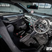 Stripped rear sprayed satin black; Safety Devices half roll cage; black headlining; Sparco Grid II fixedback bucket seats; M2 Motorsport super-low seat rails; Persona Neo Grinta Alcantara 350mm steering wheel with snap-off boss; Alcantara gear gaiter; weighted gearknob; Broadway rear-view mirror; carbon fibre-dipped trim pieces.