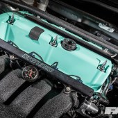 A metal polisher by trade, Chris had gradually filled up the car’s bay with plenty of shiny additions over the years. “The maintenance to keep it looking its best was too much even for me, though,” he admits, with the solution coming in the form of color-matching parts like the cam cover in the same teal hue as the aforementioned cage, creating a contrasting theme throughout the ride.