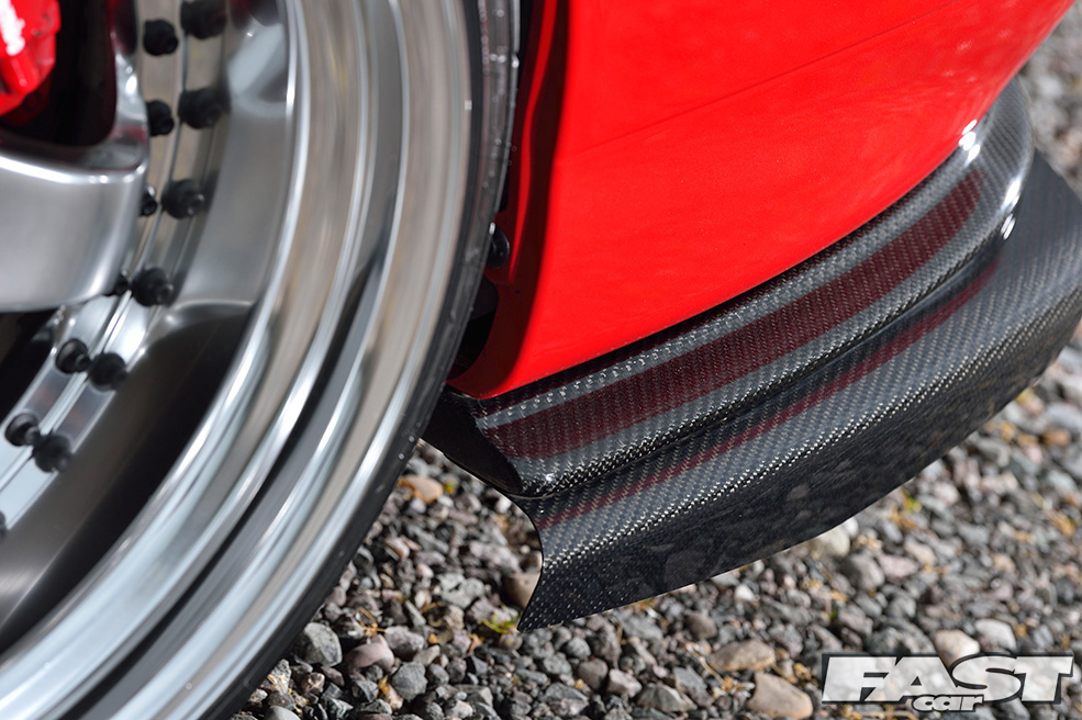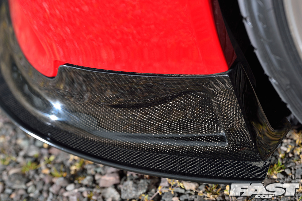 The engine bay is packed with custom parts too. As a race mechanic for a European Formula 3 racing team, working at circuits including Spa and Monza, Aaron knows his way around the performance side of things. Initially he fitted some bolt-on parts and had the factory ECU mapped by Simon Norris at Norris Designs. The engine made 397bhp initially, then rose to 405bhp after fitting larger fuel injectors and a larger intercooler.