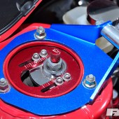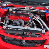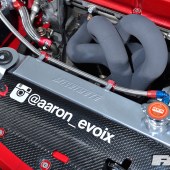 Is there a more popular car for performance tuning than the Mitsubishi Lancer Evolution? It seems every show is packed with ’em, and every one is making a billion horsepower. Because of this it’s easy to become a bit jaded by them. They’re everywhere and most of them are track cars, or are in the process of being turned into one. That’s why 25 year-old, race mechanic Aaron Palmer’s immaculate Palma Red Evo IX MR stopped us in our tracks.