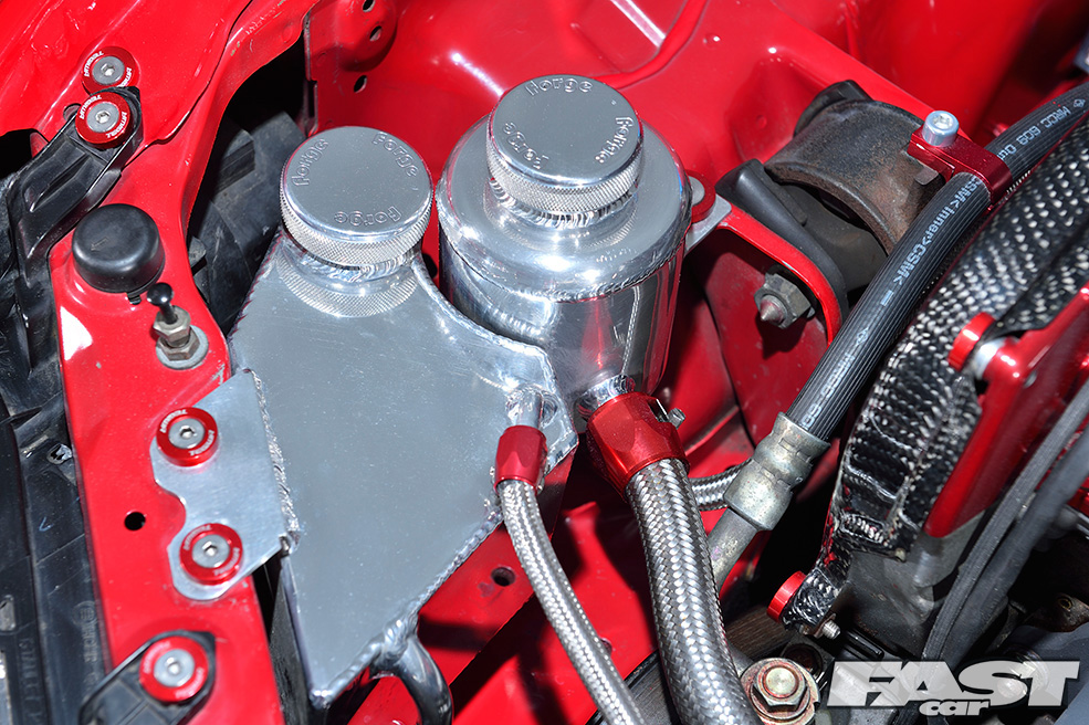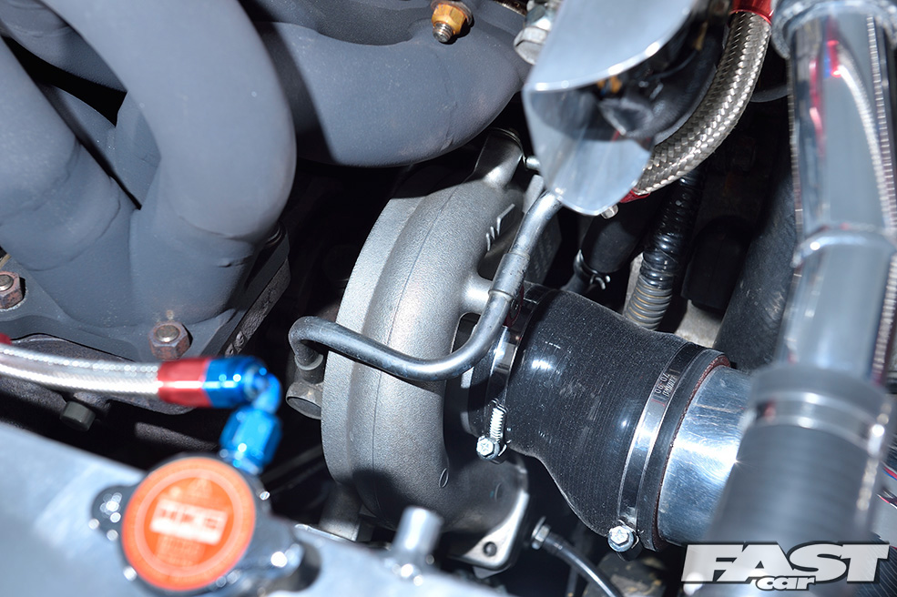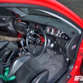 It’s a similar story under the bonnet. Ignoring the performance tuning for a moment, this is one sexy engine bay. Aaron has gone to a lot of effort to make sure the engine looks as good as it performs. For example, the JM Fabrications exhaust manifold has been Zircotec ceramic-coated to keep the heat in, reduce under-bonnet temperatures and keep the engine working at maximum power. However, Aaron admits that the Primary Black coating was also chosen to match the AMS F1-I inlet manifold.