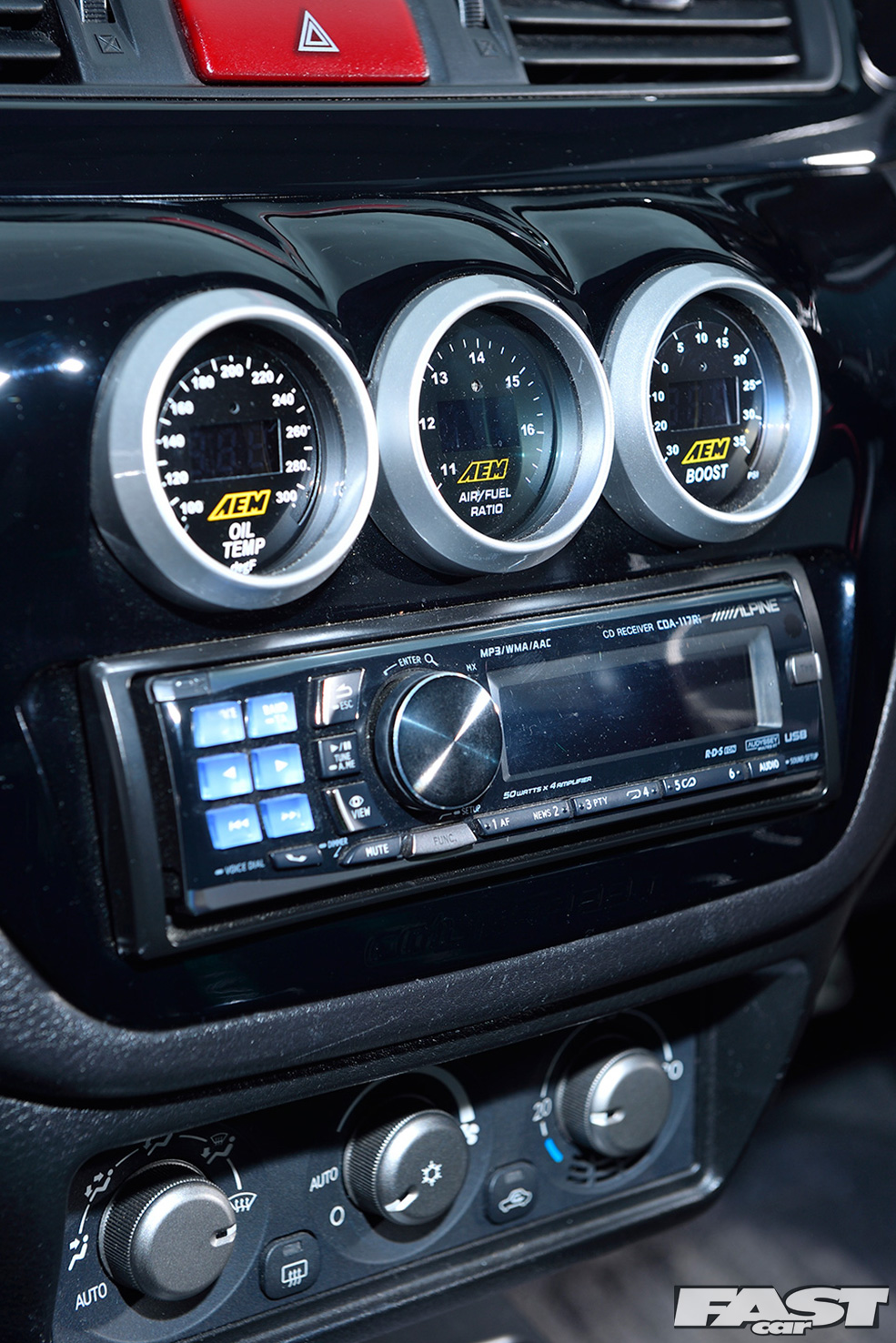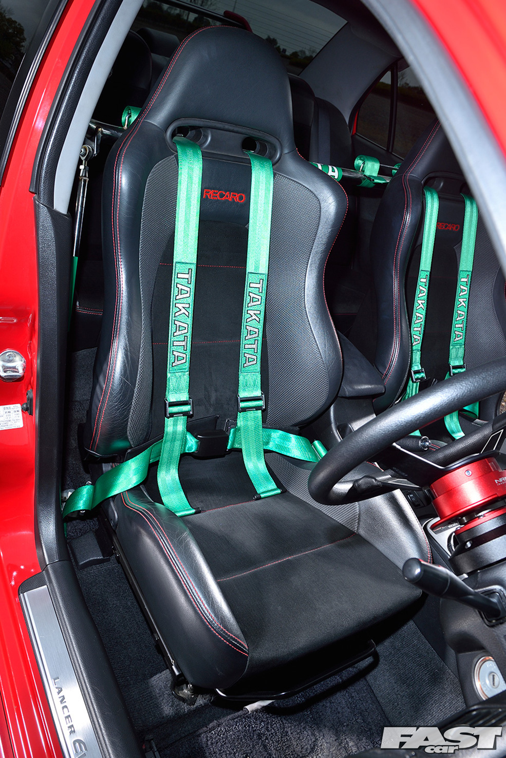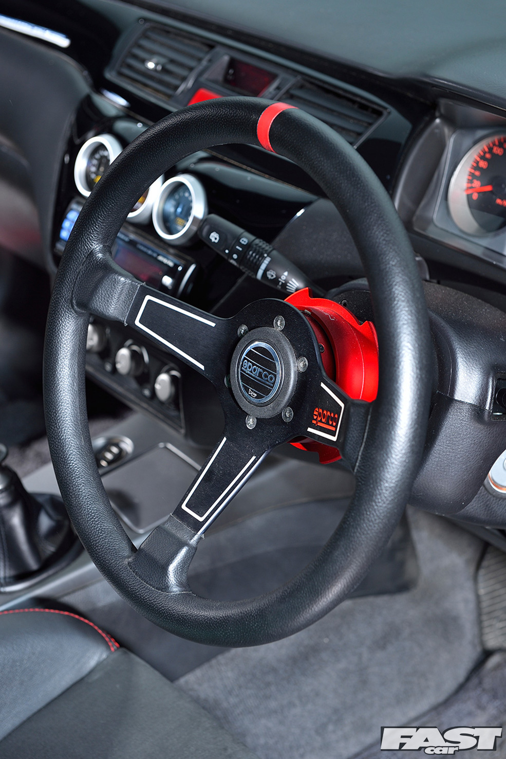 Also, because this is a Japanese import MR model, the 4G63T engine is equipped with MIVEC, Mitsubishi’s variable valve timing system that helps spool the turbo quicker but still makes good power at the top end. Plus it has a TD05-15G turbo that is slightly smaller than some of the FQ models. In other words, there is no lag. There is power available whatever the rpm, whatever the gear. That makes this a properly fast street car.