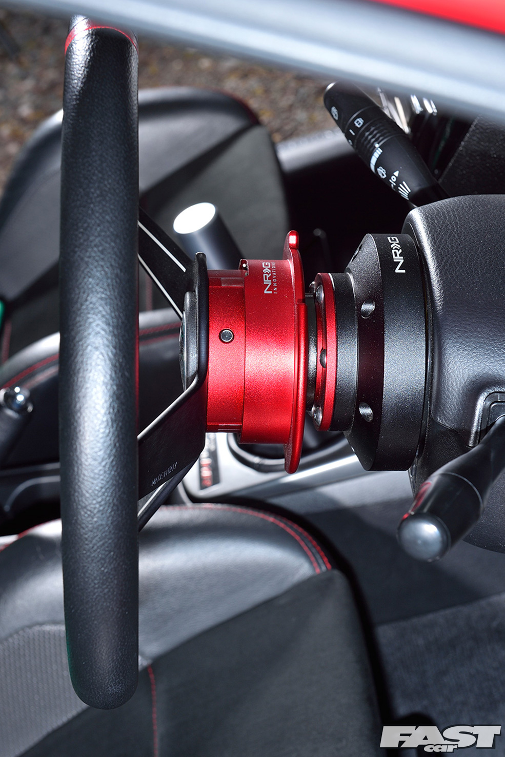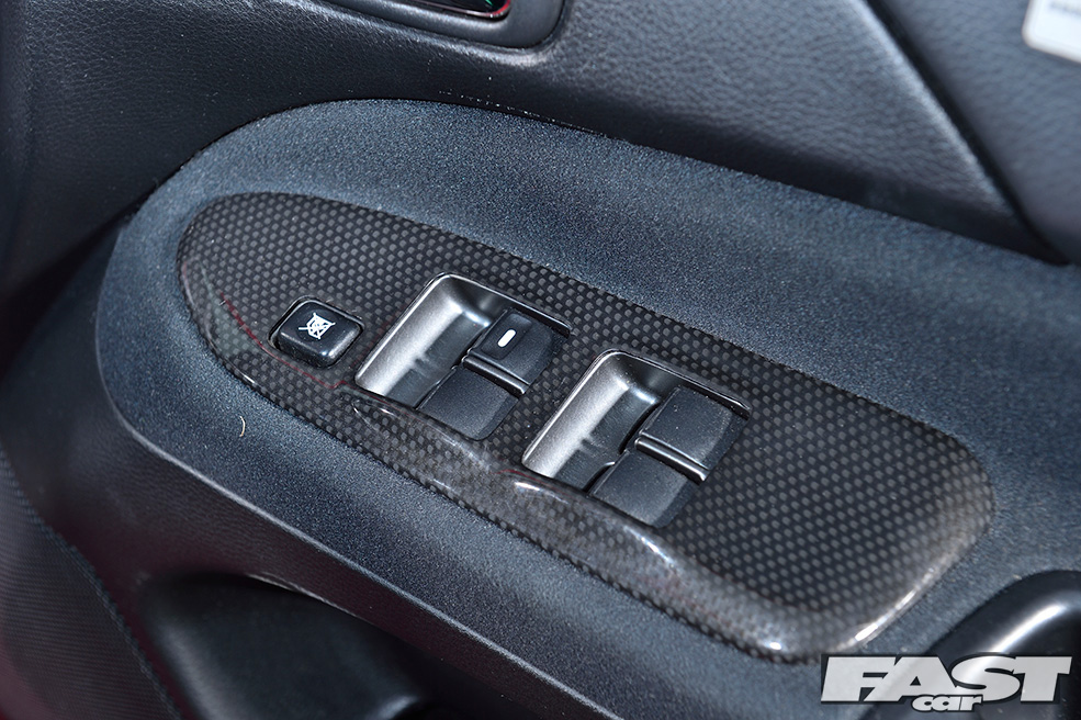 “It had an electric sunroof, polished side sills and chrome detailing around the blower vents. The piano-black dash inserts are unique to this model too – the UK cars got fake carbon fibre instead. I’ve tried to maintain the black, red and chrome theme throughout the whole car. I get compliments on the interior, but I think it’s all relatively subtle stuff. Like choosing a steering wheel with red stitching to match the factory-fitted Recaro seats.”