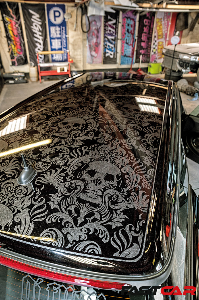 Well, with great fitment comes great responsibility, and these little tweaks are all part of the fun. Indeed, it’s little tweaks that have led to larger ones and created an unstoppable avalanche of creativity. Take the colour scheme, for example. Sam was aiming for a murdered-out kinda vibe, but never saw himself going as far as respraying the whole car in a glossy black. It was the incremental steps leading to it that made it an inevitability, and from then on the script just started to write itself. “The paint on the roof is loosely inspired by lowriders,” he goes on, “and Adam at Wyatt’s Autopaint & Body Repair was able to bring my vision to life, he’s played a big part in transforming the exterior.