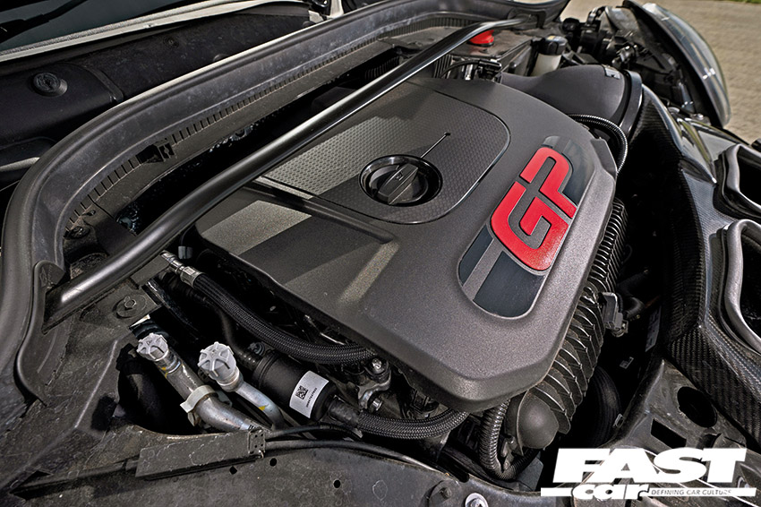 Chassis suitably sorted, now was the perfect time to add more power to the package, courtesy of the eminently tunable turbocharged B48 sitting under the bonnet. With Marc’s assistance, Aaron’s GP3 was put to use as a development car for several companies, which opened the door to a host of go-faster goodies. “There is an Airtec intercooler on the car, which is there to help with the intake temperatures. The B48 engine suffers heavily with heat management on the GP3, so the intercooler is a massive need, especially when remapping the engine for more power,” Aaron explains. “I’m also running big boost pipes, an Airtec intake and a Milltek non-res exhaust and sports downpipe. Due to the downpipe, the car needed a remap to work properly, but due to COVID I was unable to get the car over to Marc at Beek Racing,” he says. “So, I reached out to Lohen, who took the car in and applied its remap (350hp and 428lb ft), fitted Goodridge braided lines and a set of Eibach anti-roll bars for me. Thanks to the coilovers, we’ve since been able to find the perfect setup with the two combined after some trial and error at Tyrepoint,” he says. At this point, he had a seriously sorted GP3 with a sweet suspension setup and some impressive power, but Aaron was seeking performance perfection and knew there was more to come.