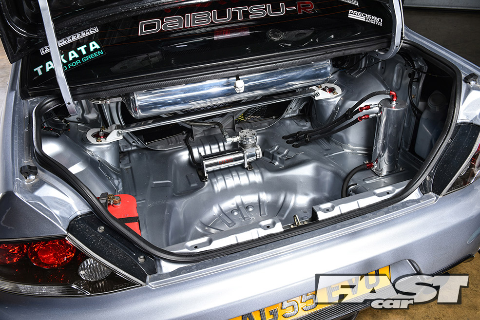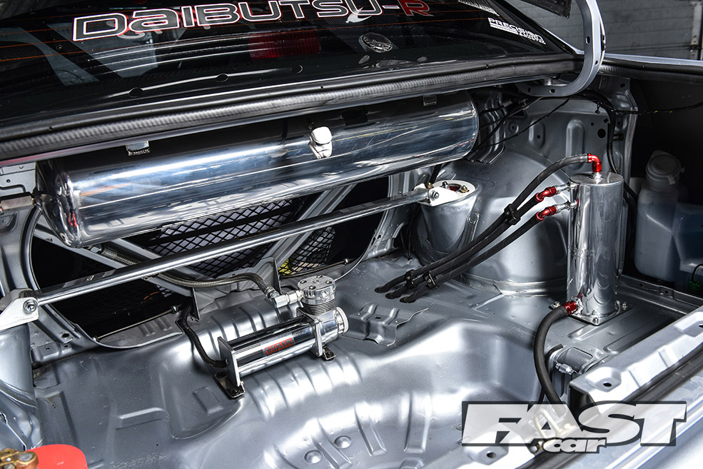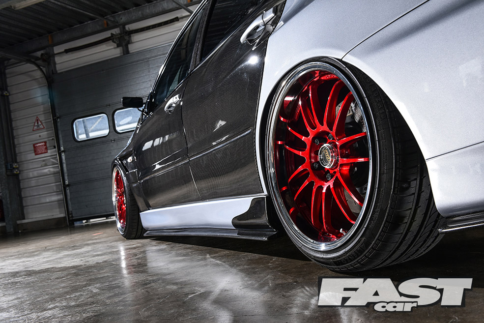 This car, then, is one of contrasts. Its fully-built stroker motor runs the sort of spec that makes race teams weep, while the body wears all manner of lightweight parts from Jon’s own company, Daibutsu-R – the sheer acreage of carbon-fibre is a marvel to behold in all its lacquered, exposed-weave glory. Yet at the same time the entire car is flawlessly, improbably clean. And Jon’s eager to point out the competence of the chassis too – it’s running Air Lift suspension along with most of the Whiteline catalogue, and he’s pretty forthright when you get him onto the subject of wheels: “The new ones are Volk RE30s,” he explains. “They’re forged rims, one-piece and proud! So many people get hung up on the idea of having split-rims, but these RE30s are strong and they weigh about 7kg a corner, it makes a difference!”