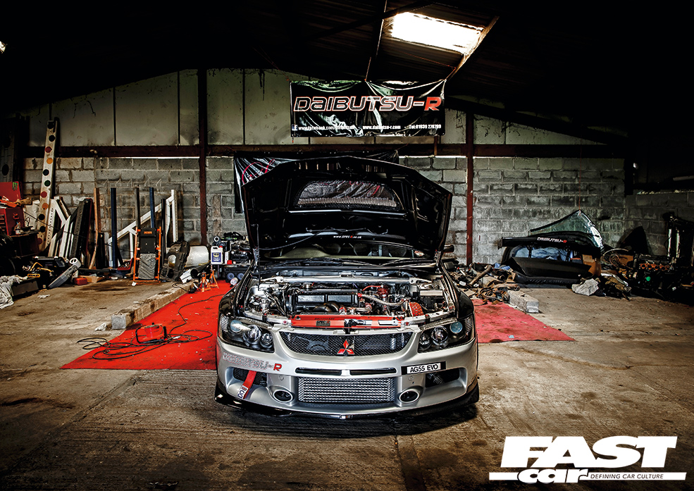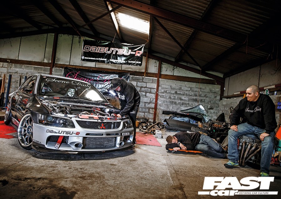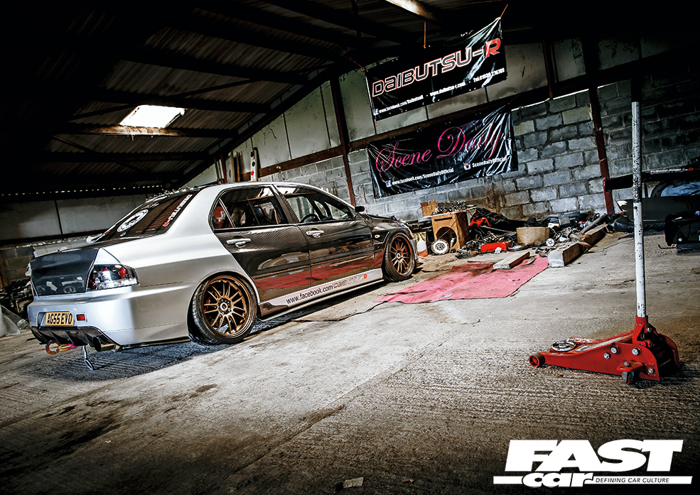 This car wasn’t done by giving a tuner a blank cheque, though. It wasn’t even done in a fully-equipped workshop. This stunning Evo was built by a bunch of determined mates, with limited tools, in a barn.