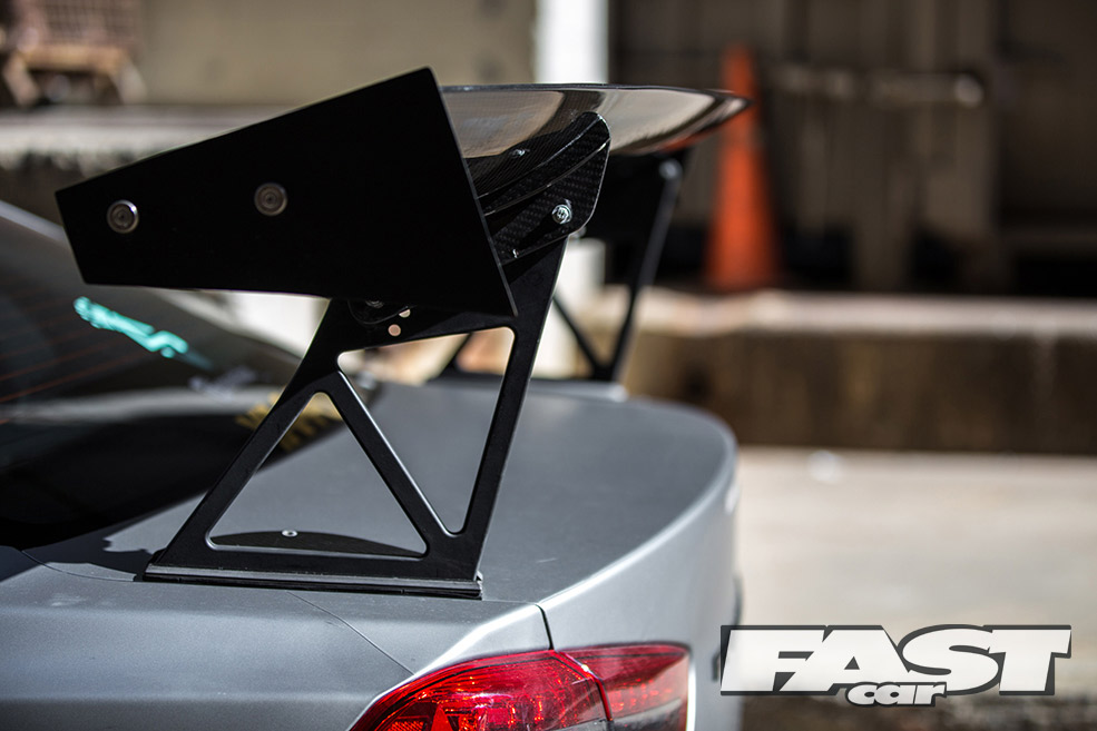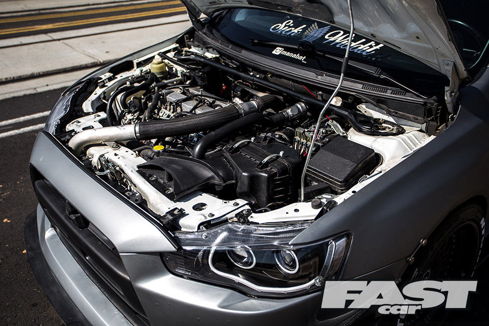 2.0 4B DOHC 16v MAPerformance external dump downpipe; NGR-Tech test pipe; Tsudo Single exit exhaust; Clutch Masters FX400 six-paddle clutch; ACT lightweight flywheel; AEM intake manifold; ETS Upper Intercooler Pipework kit; Agency Power BOV. Cobb 3-port boost control solenoid and Accessport