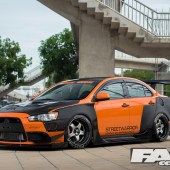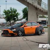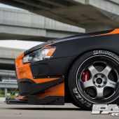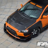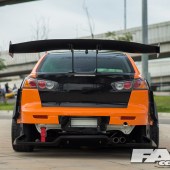 The sideskirts continue the trend of needing warning stickers for those who may try to get in and out of Win’s Lancer where the rear hosts a radical rear diffuser and massive GT wing, all a part of the StreetWarrior aero kit by Garage Unique.