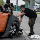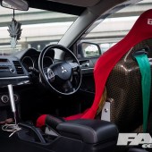 Under the hood is where things start to really get interesting. The 4B11 has undergone a series of changes to extract more performance out of the inline four engine. Almost everything besides the crankshaft (for the time being) has been replaced with better and stronger parts. The turbocharger has come directly from the Evo X, Arias pistons, Manley connecting rods, and cams similar to the ones found in the Evo X have been swapped in attempts to increase power.