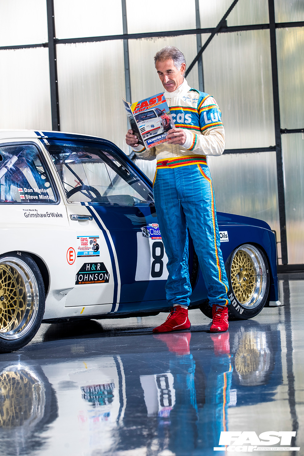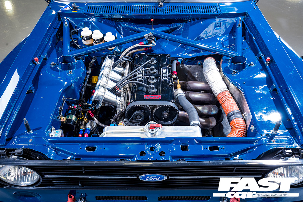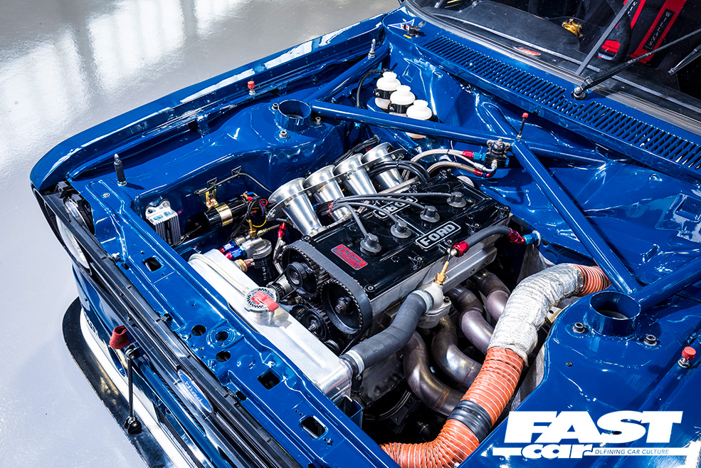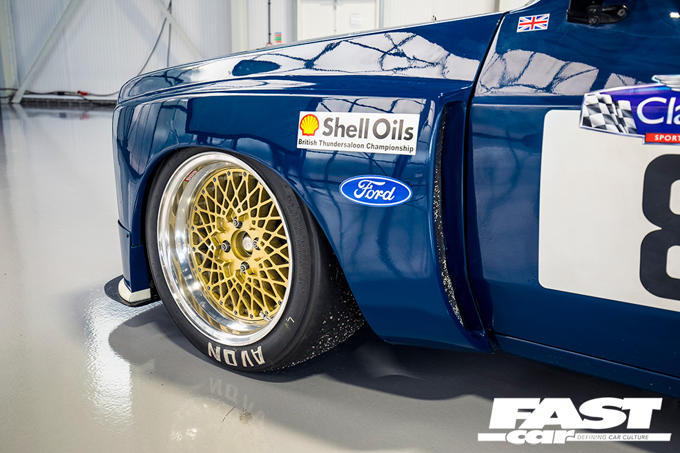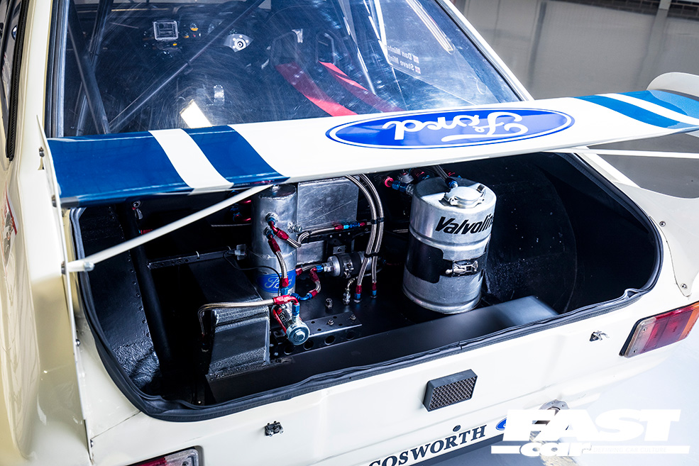 “The Escort was originally dark blue and white, before it was painted in its well-known red and white livery, so we decided to go with the blue front and Ermine white rear colour scheme,” Dan explains. “We still had the Hart 420R engine at the time of getting the car back, but with an original bulkhead and front panel it was too long and wouldn’t fit in the engine bay! The BDX went nicely in there though, as that’s what was in the car when it was first raced back in 1980.”
