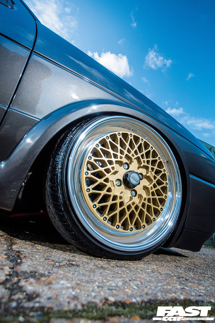 Combined with ’90 spec front arches and G60 spec rear arches Vic has christened this look the, “Super 90” spec and there’s no doubt those custom built 8×17″ BBS E50 rims sure do fill them up reassuringly. With Sunny on the guns, the Scirocco green hue was dusted on and the car was back in no uncertain terms. “To see it looking complete was quite emotional,” says Vic. “There were times when I thought I’d never get it back on the road, but all of the time, energy and emotion that goes into a build like this is definitely worthwhile, at no point did I ever even think about selling it.”