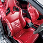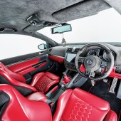 “Although the Edition 30 interior isn’t a bad place to be, it wasn’t where I wanted it,” he says. “After a few more conversations with Plush, it received a full trim based on some Recaro CS that were ‘surplus to requirements’ from Forge as they’d been used on a run to the Nürburgring before taking them out and storing in the warehouse. To keep the OEM feel, hexagon stitching was used throughout the trim, tying into the hexagonal design in the front grille. Some subtle touches were added along the way, such as the US-spec driver’s doorcard modified to fit the passenger side, and with the retrim completed I wasn’t happy with the dash as it didn’t tie in with the headlining and doorcards… so Luke trimmed this up in Alcantara to match.”
