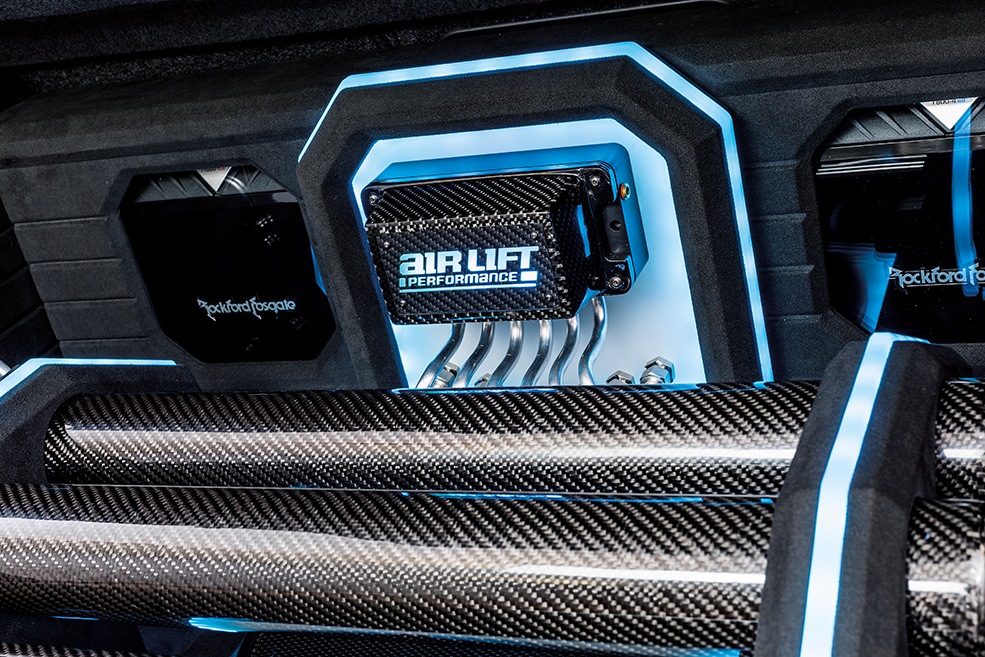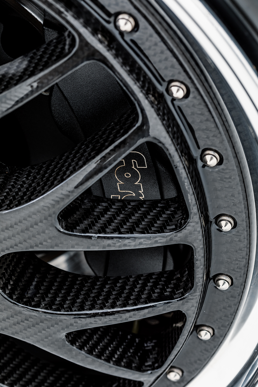 “I’d had touches of carbon on a previous car, and knew I’d get a few bits and then want a few more, so I decided to go all-in,” he grins. “The brief was that anything not painted on the outside was to go gloss carbon, and any smooth plastics inside were to be satin carbon. New interior parts were bought and sent off to Paul at C6 Carbon, and the transformation began! Not long after this I was speaking with Phil at The Install Company, and a new boot build was planned out as well as a set of BBS GT-004 that a friend of his was selling. We also decided an upgrade was overdue, and Air Lift Performance front and rear struts were installed along with 3H management. Phil then got the headache of fitting ET27 rims! Machining the wheels, face-mounting the centres and individually machining spacers bespoke to each corner of the car, Phil had the fitment dialled in. And after a few months, I again wanted to push things up a notch so the wheels were stripped and sent up to C6 with all the other parts, including some tanks from the audio build.”