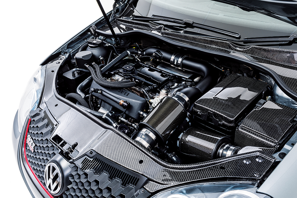 xBYD 2.0-litre turbo, Forge Twintercooler front-mount intercooler, Forge Twintake system with carbon fibre inlets, Forge high-flow recirc valve, Forge turbo resonator delete, Forge oil catch can, Forge coolant tank, charcoal canister and washer bottle filler neck, Forge billet oil and coolant caps, Forge silicone boost and coolant hose kits, HPA Motorsports inlet manifold, runner flap delete to cylinder head, Revo Stage 2+ software with SPS Pro, Autotech uprated HPFP, Helix performance clutch and flywheel, Milltek exhaust system inc. downpipe, sport cat and resonator delete, carbon fibre battery and fusebox covers, carbon fibre slam and scuttle panels, 6-speed manual
