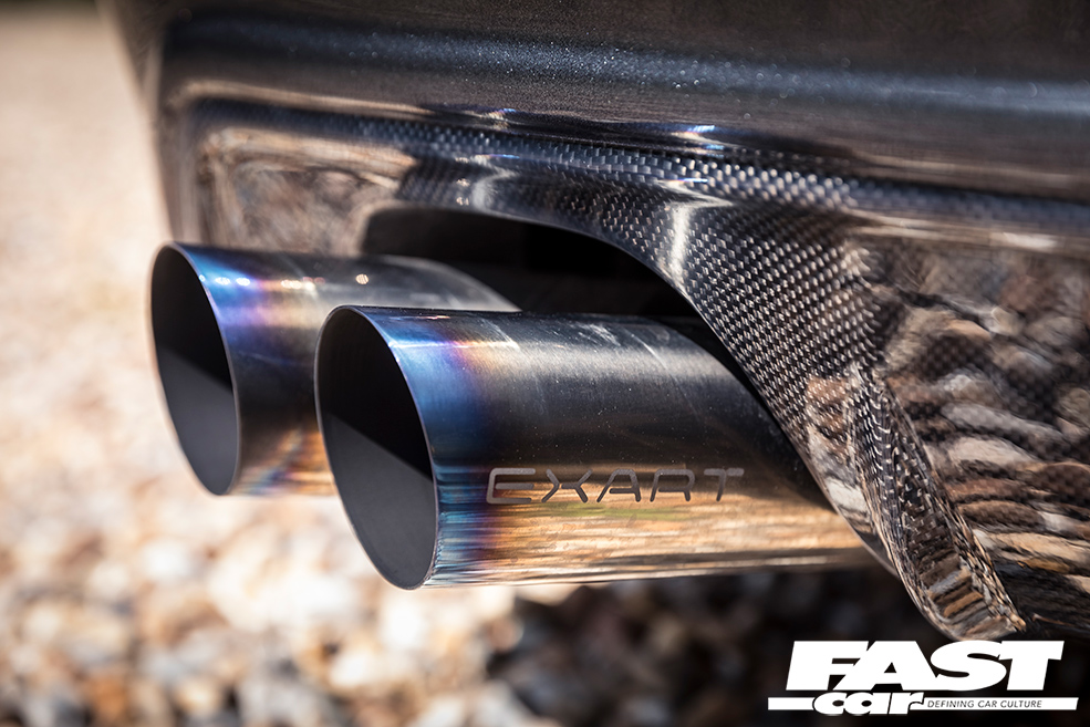 The depth of the build is equally inspiring. At first glance the body looks almost standard, such is the sympathy of the ‘Miyabi’ kit’s lines, but in fact the front wings are 40mm wider apiece, with the rears being 65mm broader – all tastefully smoothed in for a cleaner look, eschewing the on-trend keenness for overt bolt-ons. It’s not just all show and no go either – the straight-cam SR20 runs a T28 turbo, Blitz intercooler and a few other tricks, and what’s really exciting about the go-faster bits is the custom Exart exhaust: this hand-built twin setup really is a work of art, painstakingly crafted from 130 separate pieces, and the sound that bellows from those titanium tips is frankly biblical.