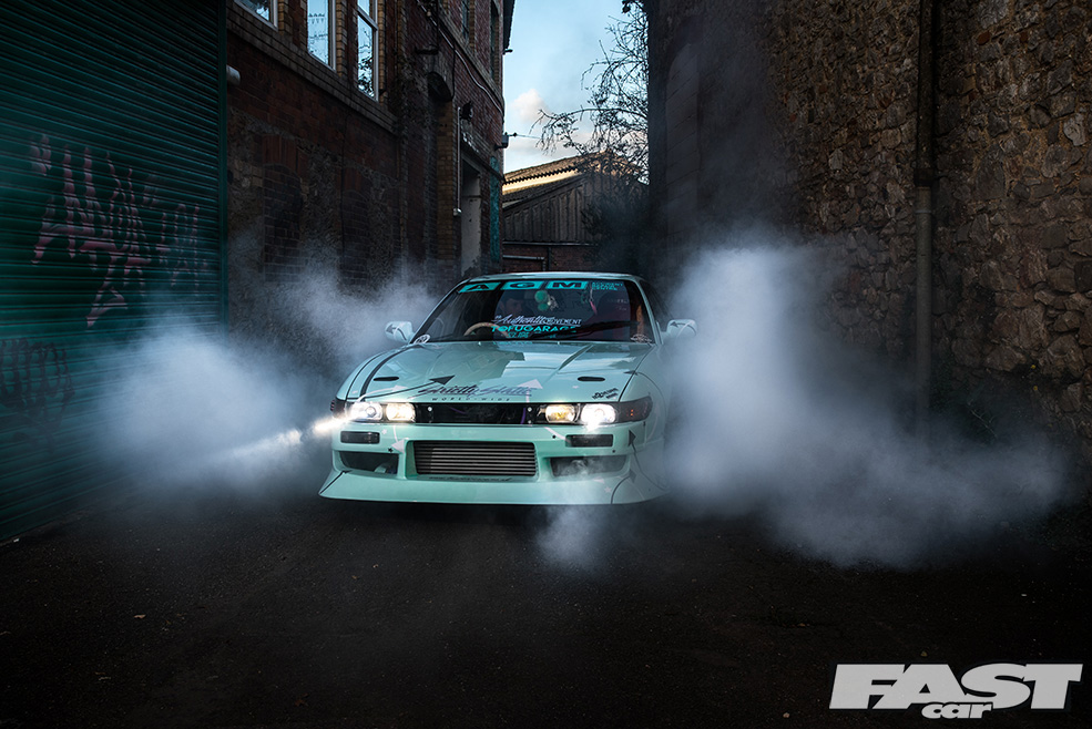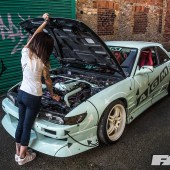 Mel wasn’t planning on going off half-cocked and all-guns-blazing, however; she appreciated the importance of learning how to drift properly before just piling in and smashing things up. “I had an E36 1.8 8v which I initially learned my basics of drifting in – you know, the typical streeto and roundabouts,” she continues. “But after realising that the car was underpowered and was stopping me progressing further, it was time to level up to the boosted life, which also helped me make the decision to buy the PS13. In my own opinion, even though I already owned the S15 which is extremely modified, I wasn’t ready for the car yet. I needed a medium level of power so I could learn how to exploit it, and with the PS13 being almost stock I felt it was a good way to progress and make me ready for the more powerful S15.”