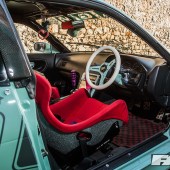 A very sensible approach, we have to applaud her for that. This explains why we find this car in a comparatively mild state of tune, the SR20DET running uprated cams, fuelling, and induction, as well as a bigger turbo and intercooler. That said, ‘mild’ is relative, and 280bhp is still more than enough for mischief! In a car so light and agile, this makes it a little rocketship.