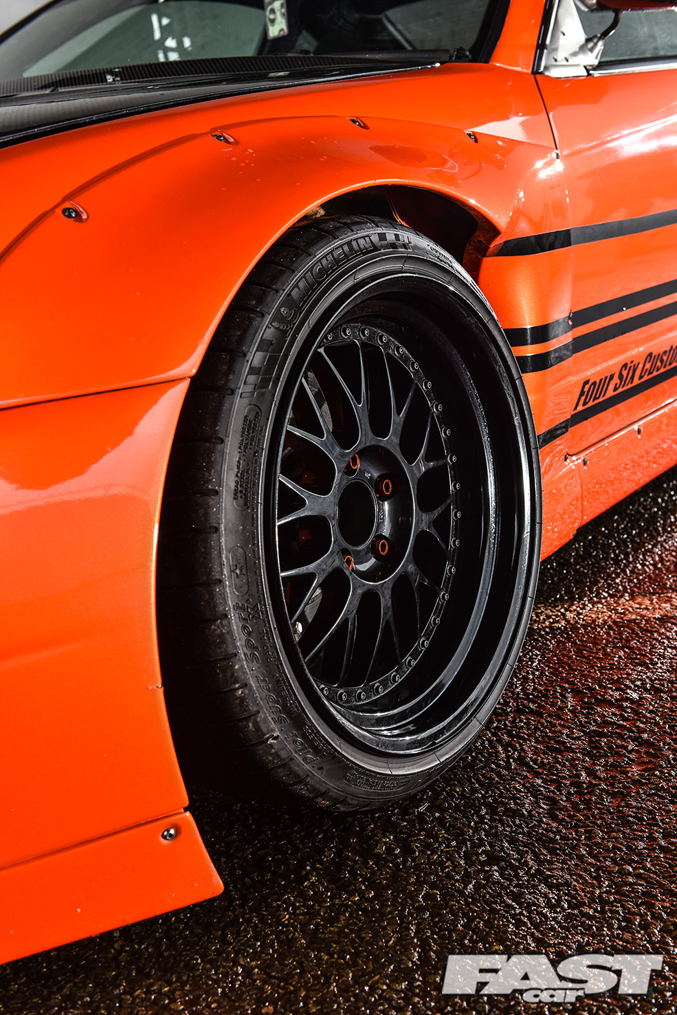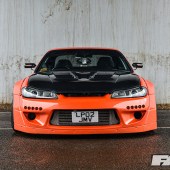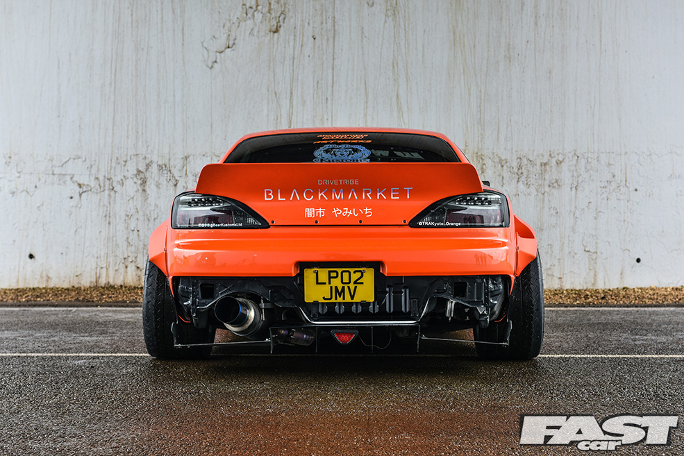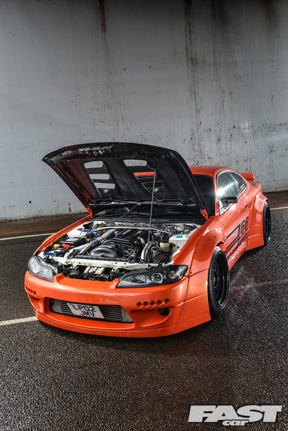 With the help of friend Chris at the local Big Bear Kustoms garage, Elliott was hooked up with this particular S15 Spec-R that was up for sale out in Japan at the time. Already sporting a lairy orange paintjob and that all-important genuine Rocket Bunny wide-body kit, it looked like a great base for Elliott to apply more practical motorsport-inspired touches to over time.