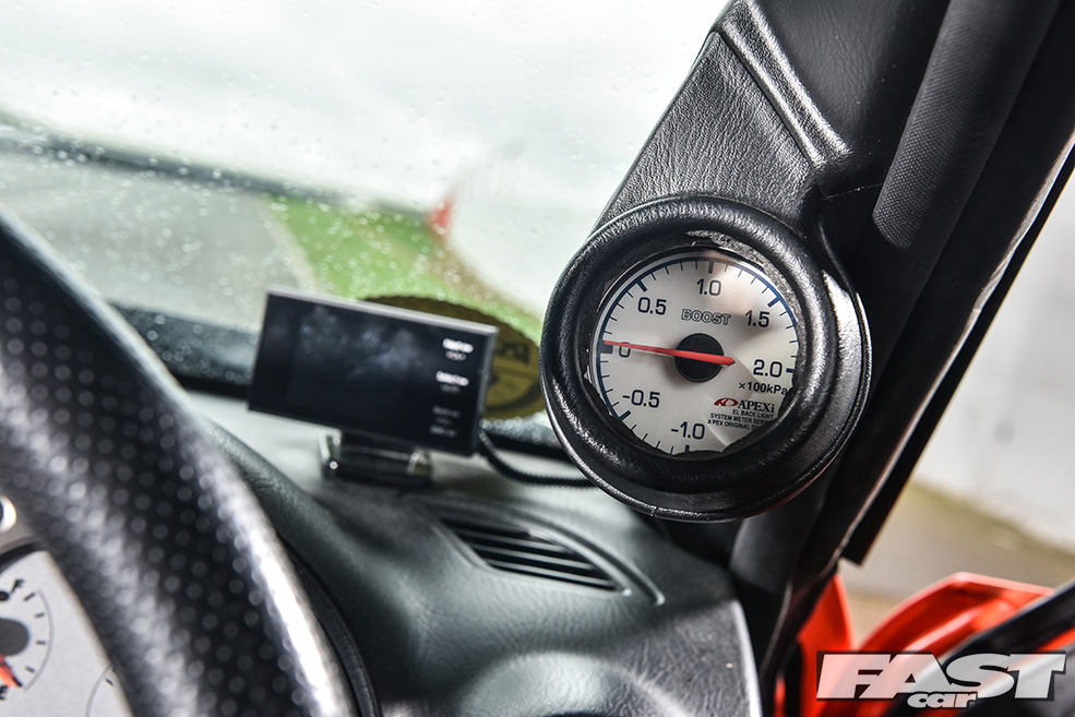 Filling up those huge arches are the WORK Meister rims which came over with the car from the Land of the Rising Sun – finished up in contrasting anodised black and looking the mutt’s nuts for it, too. These are shod in super sticky Michelin rubber which ensures Elliott’s got enough grip on the rear wheels to throw as much power as he wishes through them when the car is tuned up in the future. “The next engine mod will be a bigger turbo,” he confirms power hikes are already very much in the pipeline.