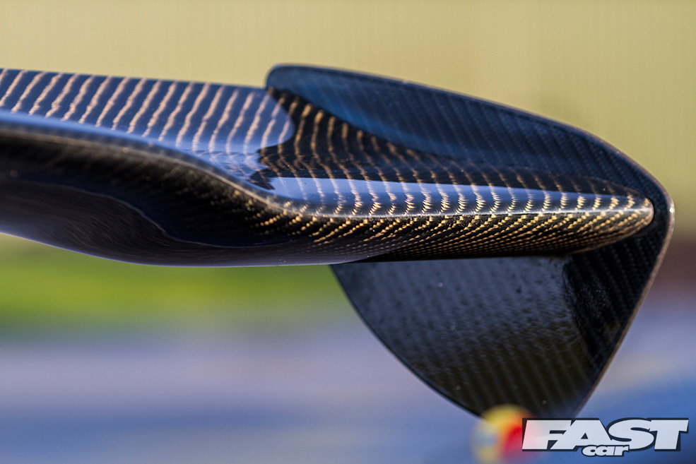 The arse end of this motor has had as much attention as the front. A Chargespeed bumper has been fitted to match the front and a massive C-West carbon wing casts a shadow wherever Mel and the beast goes.