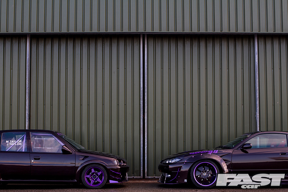 Mel had booked the 106 in with her good friend Ant at AMG bodyshop to have the interior painted to match the exterior. Our Mel is a bit handy when it comes to bodywork, so was prepping the car for paint herself. “As I was working on Maggie I spotted a massive alloy wheel out the corner of my eye. As I pulled back the bonnets and bumpers I found a dusty rubbed-down-and-ready-to paint Nissan Silvia S15”, Miss Taylor explains.