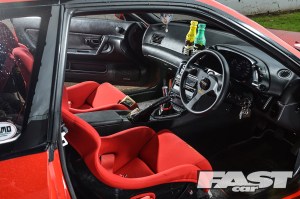 So now he had the power, but power – as those old Pirelli ads will tell you – is nothing without control. So, Rich set about the chassis with ninja force: TEIN coilovers, with the front items being GT-R units for lower ride height, a five-stud hub conversion and GT-R brakes, this was the recipe for success. He also junked the welded diff and swapped in an LSD, because Mr Tapp doesn’t mess about.