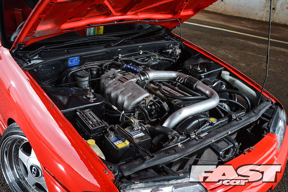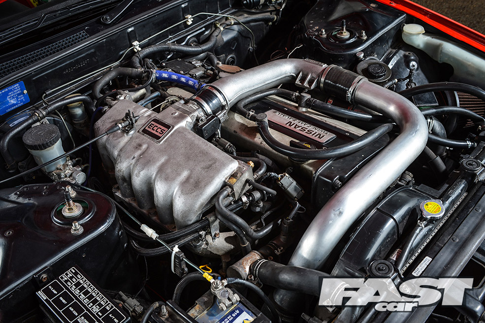 RB20DET 2.0-litre straight-six; hybrid turbo; front-mount intercooler; APEXi air filter; stainless steel exhaust system; 220bhp (est); stock transmission; LSD.