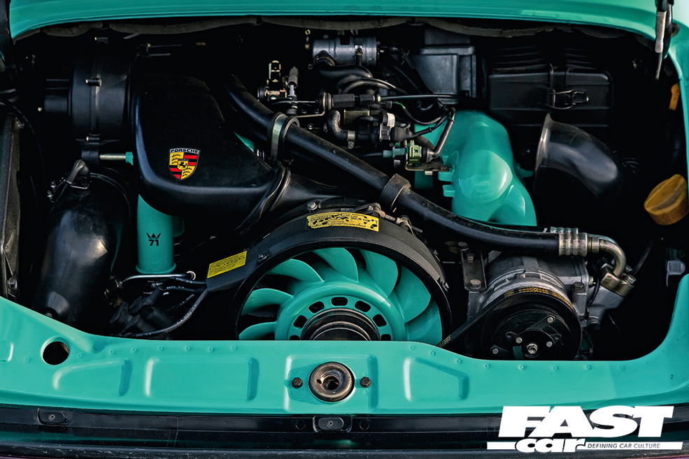 Milestone71 cup headers, Milestone71 cup cat delete, Milestone71 cup primary muffler delete, Milestone71 exhaust tip, colour matched intake, valve covers and fan, 964 RS clutch and flywheeI