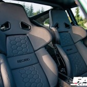 AH Exclusive/H&R Motorsport coilovers, H&R sway bars, 18×8.5in & 18×10in Rotiform LHR with ceramic charcoal centres & bolts with brushed and satin clear coat lips, 215/35R18 and 255/30R18 Conti Sport Contact 2 tyres