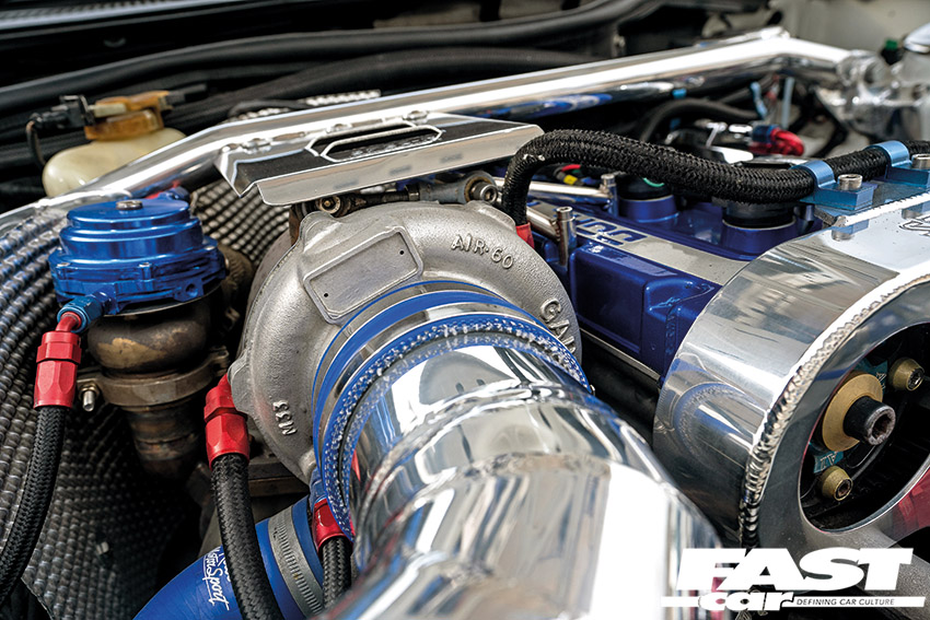 The bits you can’t see include Mahle oversized pistons and a reground and polished crank. The whole shebang is controlled by a Link standalone ECU, which allows a full range of functions such as launch control and anti-lag.