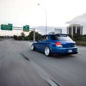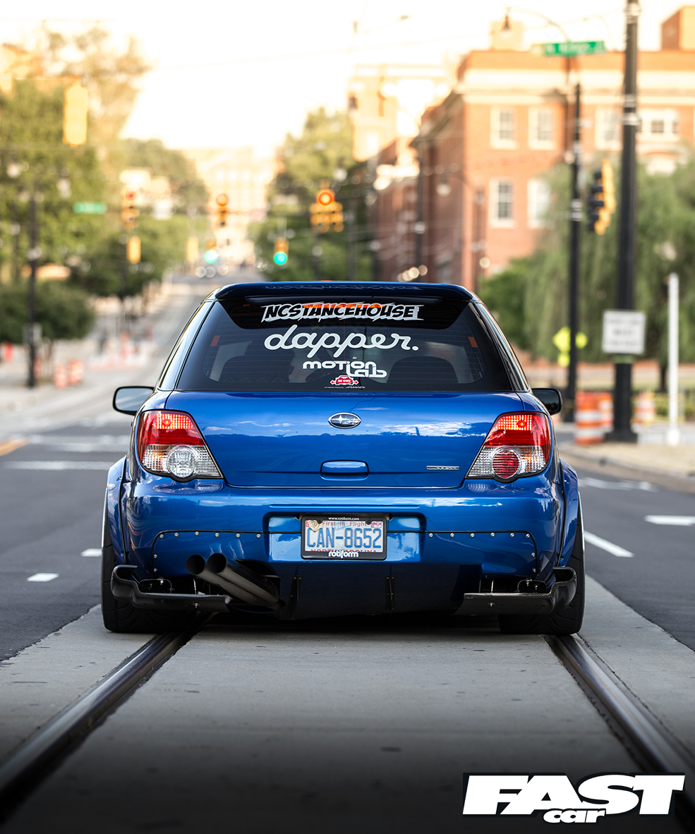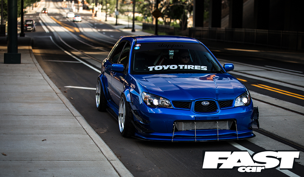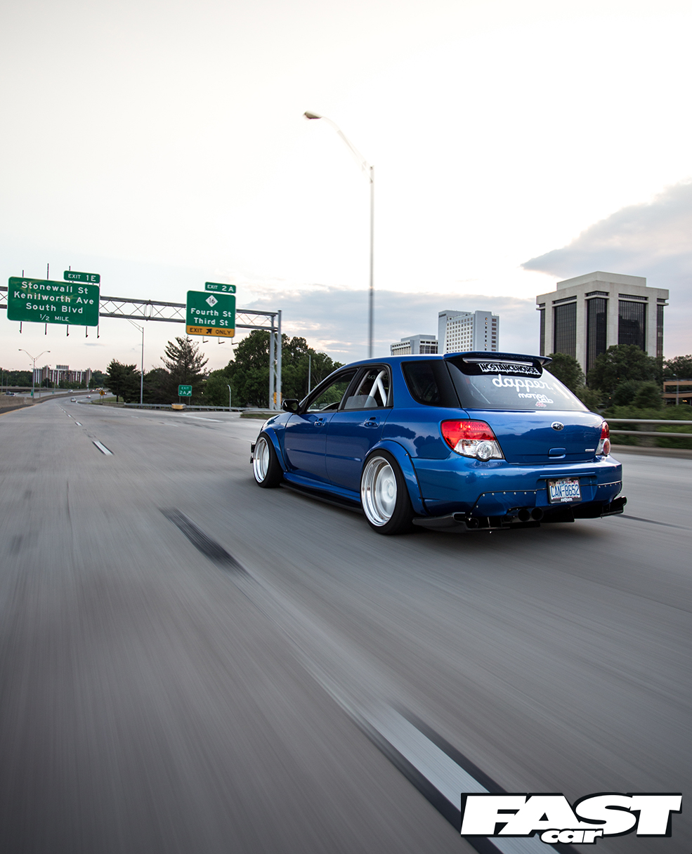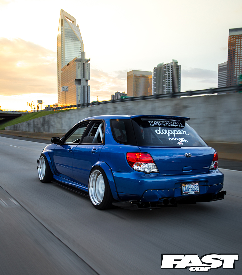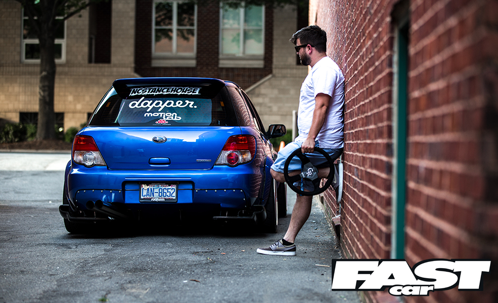 Nothing about Andrew Johnson’s stunning stanced Subaru is quite what you’d expect at first glance. It’s surprising, this motor, both in concept and execution. You see, we’ve featured quite a few insanely low Scoobys from the US over the years. I’d go so far as to say that nowadays we’re used to seeing these tarmac-scraping show-stunners all over the web. I’m not sure if it’s the beautifully smooth roads, the impeccable home-grown modifying skills or just the stance-obsessed culture across the pond, but no one seems to chassis-drop the Impreza quite like the Americans.