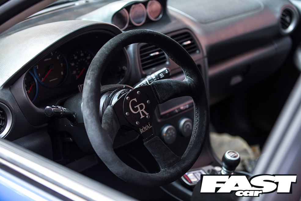 I guess the key thing about Andrew’s motor is there’s no pretence, bullshit or any of the old fanny you tend to associate with such stunning show cars. This one’s the whole truth, proof of the modernist premise that when form follows function an underlying beauty is the fundamental result. Even those super-sweet anodised Project Mu brakes are there for a reason other than to make jaws hit the floor. They’re needed, and more than you might imagine. You see, what also makes this monster a significant cut above the norm is all that Time Attack-inspired goodness isn’t just for show – this car is precisely as fast as it looks.