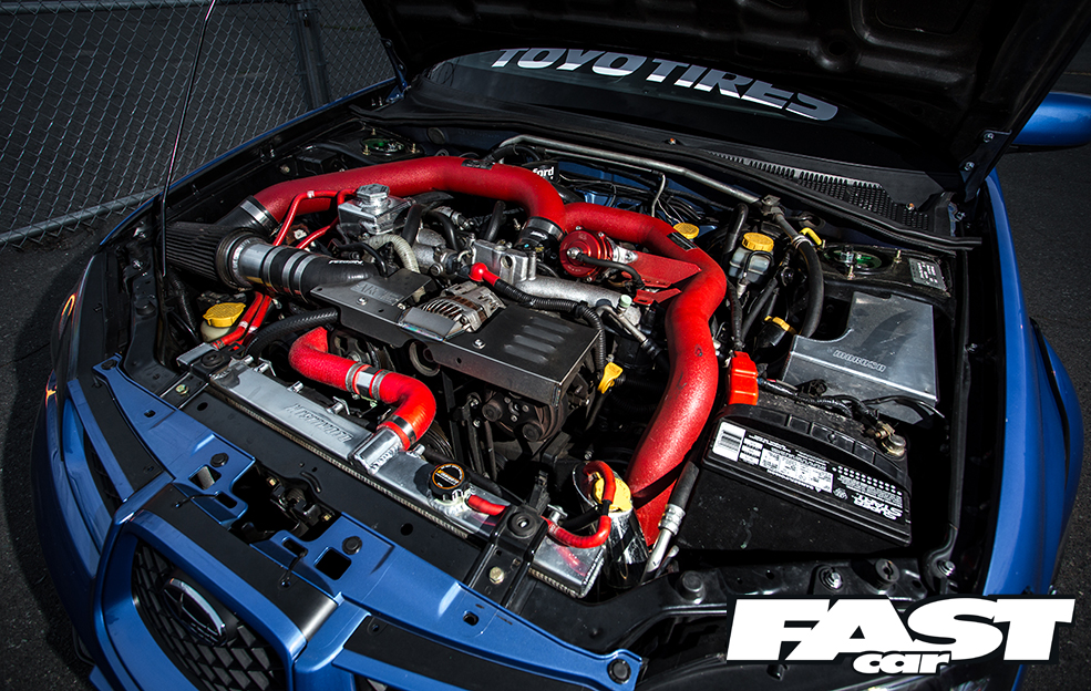 Even as standard, the WRX has always been something of a rapid motor, but upping the power is right where Andrew started. In fact, with the help of his first uprated turbo setup he managed to destroy it’s five-speed box pretty soon after owning it. With the replacement (and thoroughly bulletproof) STI box in place all was well for a while, until he was involved in a heavy-duty front-ender which killed just about everything in front of the windscreen, including the engine.