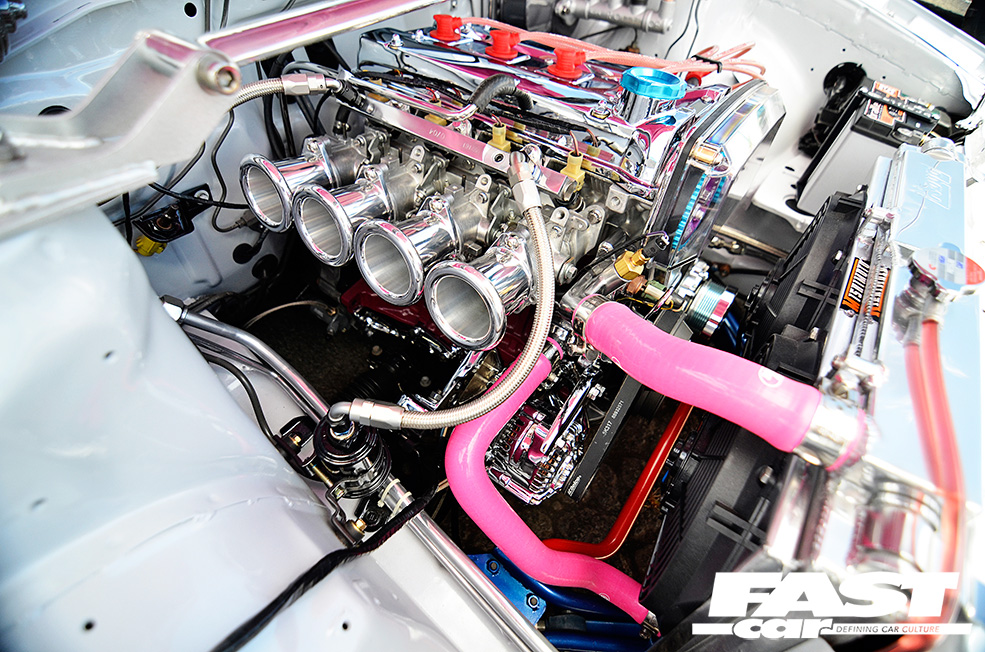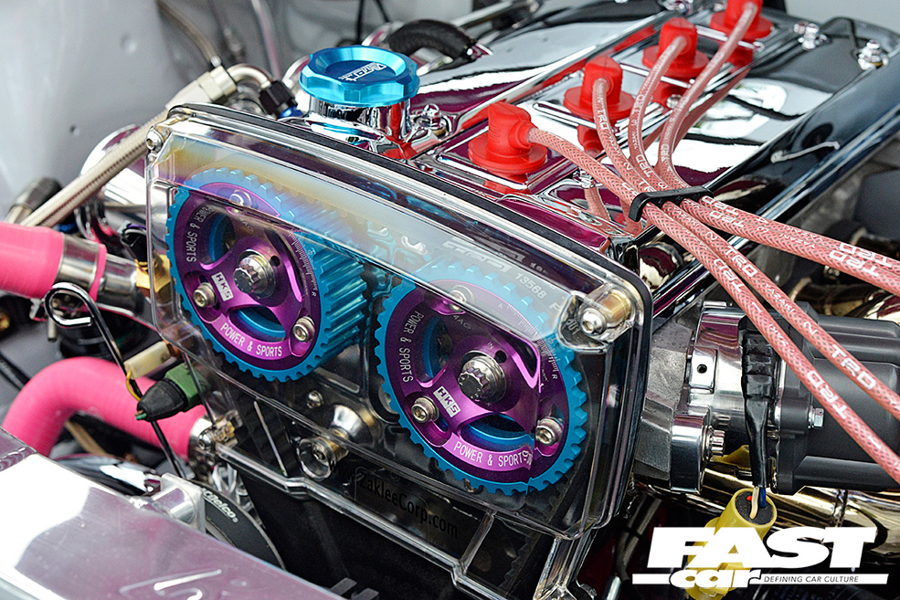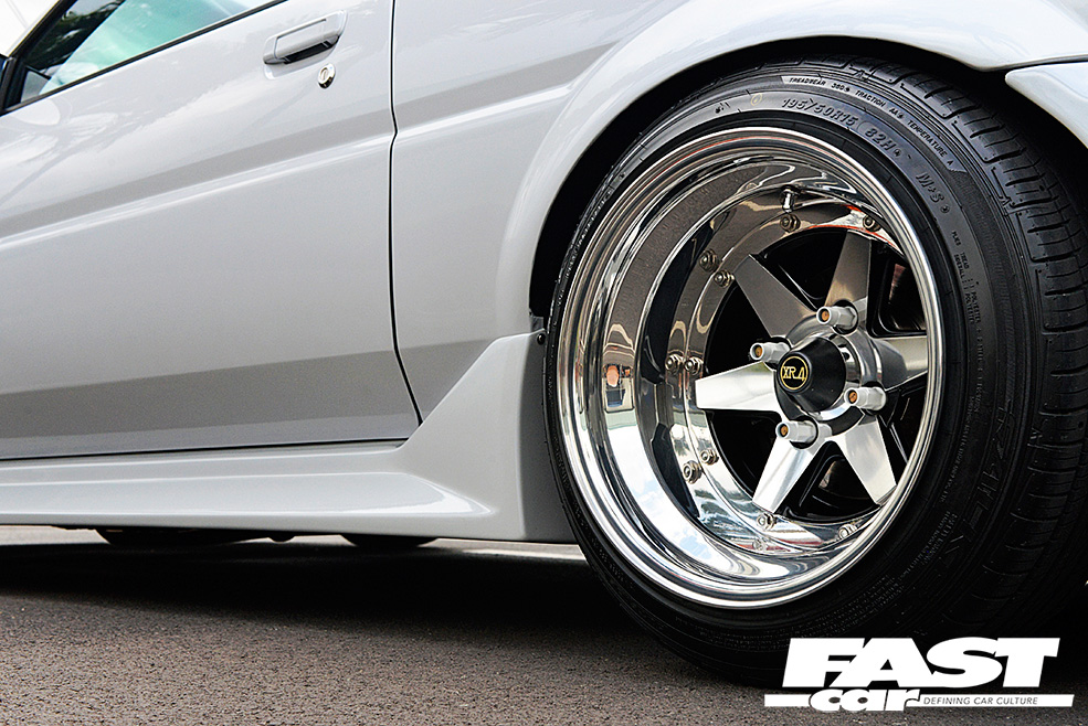 There’s no better way to complement a gleaming new paint job than with a set of fresh rims, right? Lance’s choice of heavily buffed 15in SSR XR-4 wheels certainly tick all the boxes, and, with these mirror-finished beauties sizing up at 10-inches wide at the rear, they supply the retro Toyota with an abundance of stance.