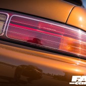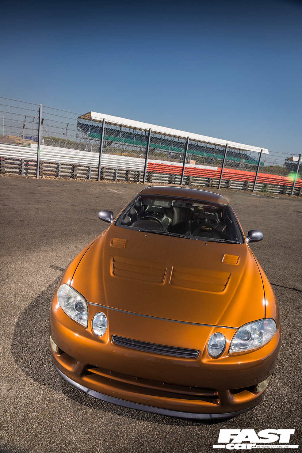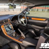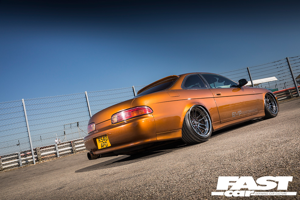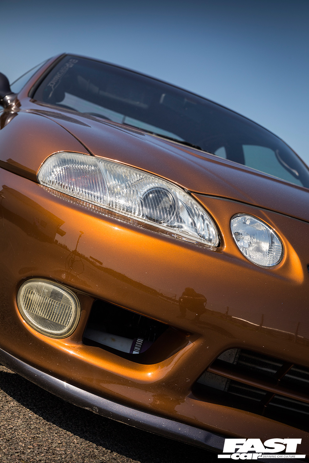 Simon, therefore, started with mods such as a slightly more aggressive VVTi-spec bodykit, a set of coilovers and, perhaps unsurprisingly, a full EMP Performance custom exhaust system, before the whole thing ‘just went crazy’ as Simon so effectively puts it. Beginning with the aesthetics, the body kit was soon complemented by a one-off smoothed and widened arch job with the help of Ben at Silk Mead Paint and Body shop. The result is so ridiculously perfect that you’d be hardpressed to tell it wasn’t standard unless you put it up against a stock Soarer; those muscular flanks now mimicking the likes of Mk1 Escorts so effectively.