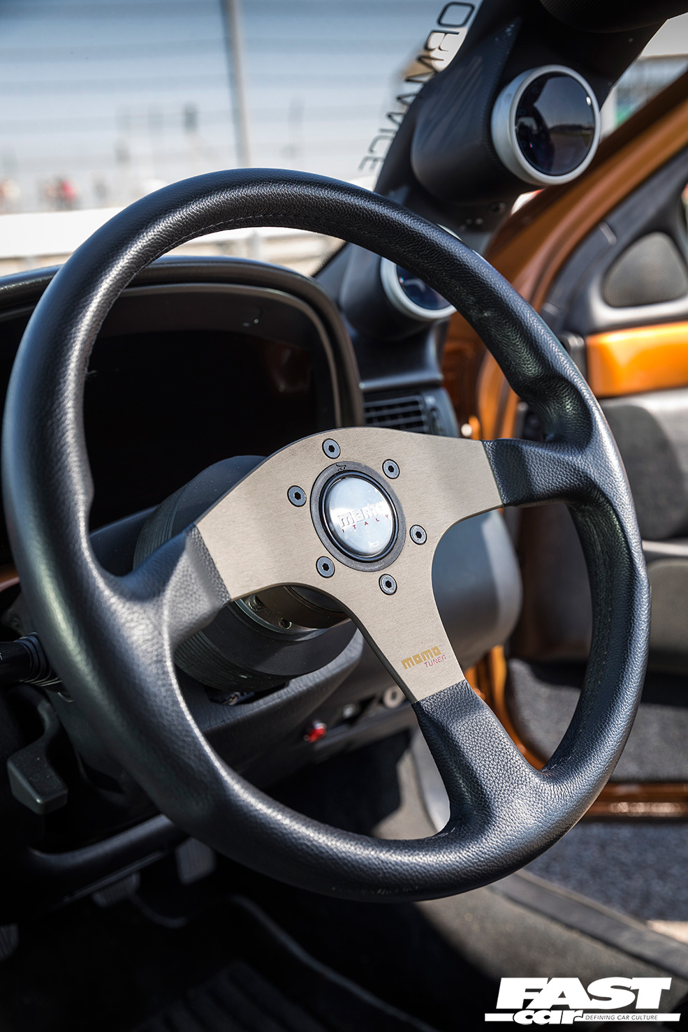 The engine’s since been taken to the next level, with Simon’s ‘only-the-best’ approach meaning that all of the unsatisfactory bits were promptly removed and replaced for more premium components. It’s why a huge Owen Developments’ roller turbo now takes pride of place under the bonnet, safely cranked up thanks to the fully reworked internals on that straight-six block. “It’s now producing 620bhp and 500lb ft of torque, although it’s good for about 800bhp which it will achieve once I’ve got a stronger gearbox,” Simon laughs, admitting the current cog-shifter would probably melt after a few hard launches on even the current setup. “It drives like a dream now though, you’d never ever know it was a 25-year-old car.”