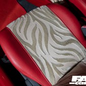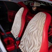 We couldn’t possibly wrap up the story without giving what is quite possibly the most lairy part of the entire project some attention, though: the interior. Eager to move as far from the basic, grey-cloth Japanese cabin as he possibly could, Bradley’s pulled out all the stops here, the car now boasting four front reclining sporty pews in a 2+2 format, re-trimmed in red leatherette and complete with zebra-print centre panels – enough to make it stand out in any situation you could throw at it! It’s topped off with that equally-as-custom, smoothed-out dashboard that utilises digital screens to carry out the tasks the more traditional dials used to.