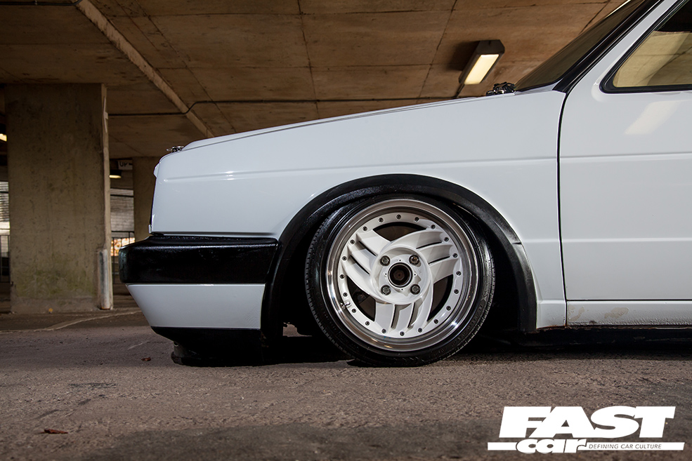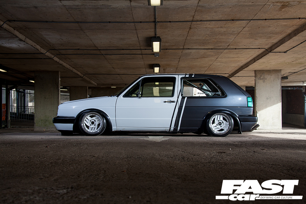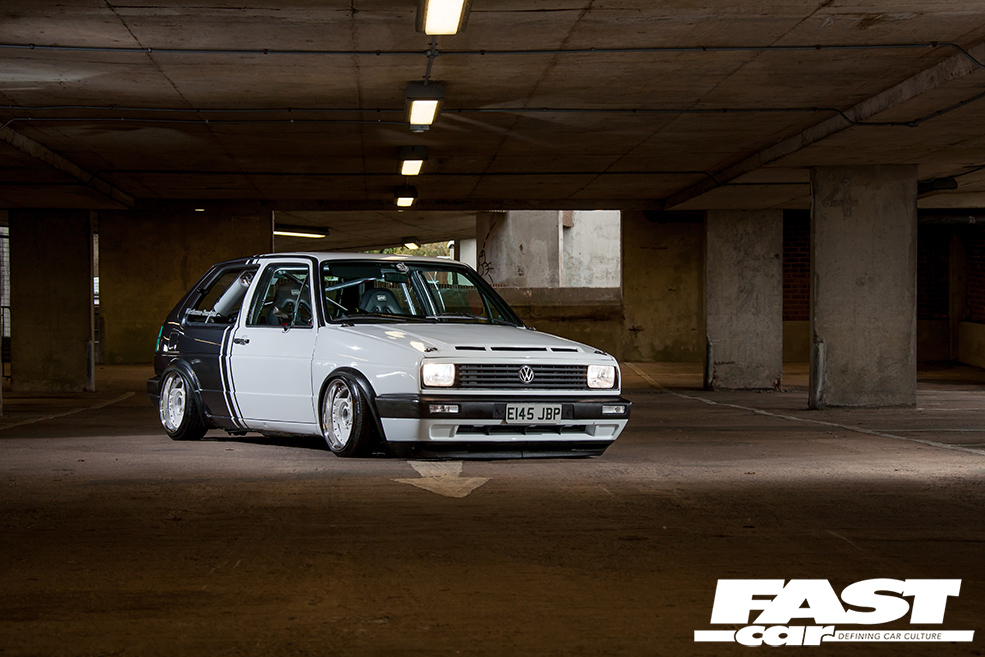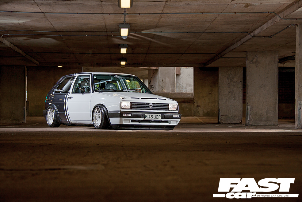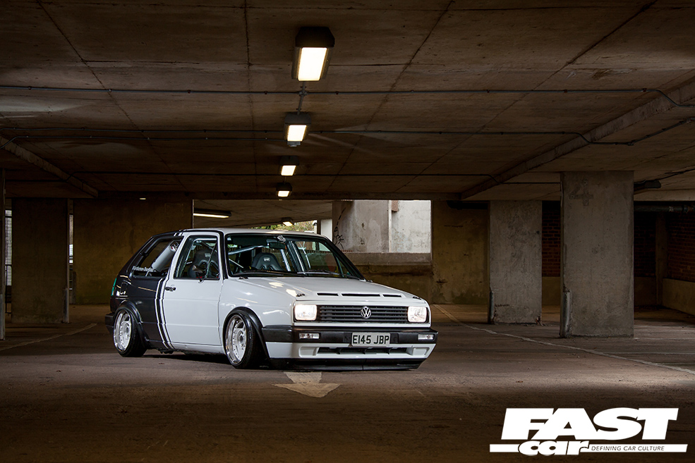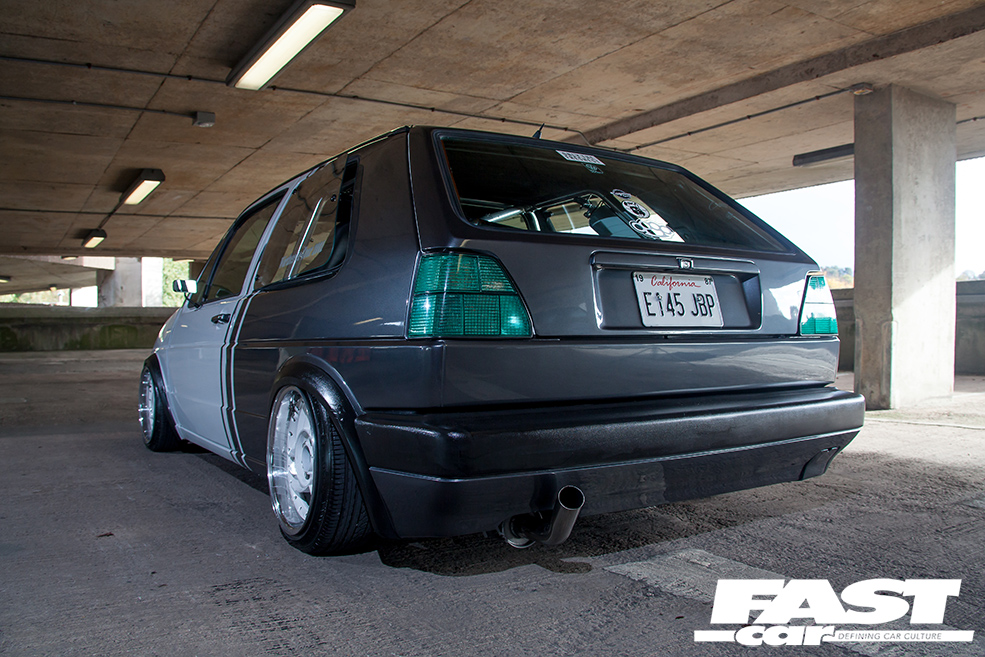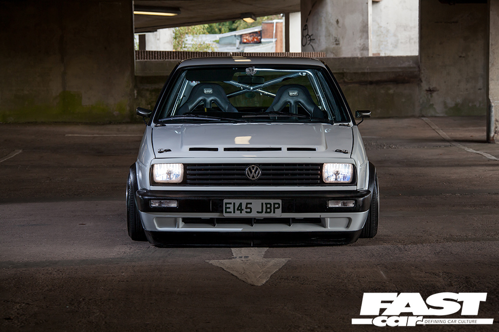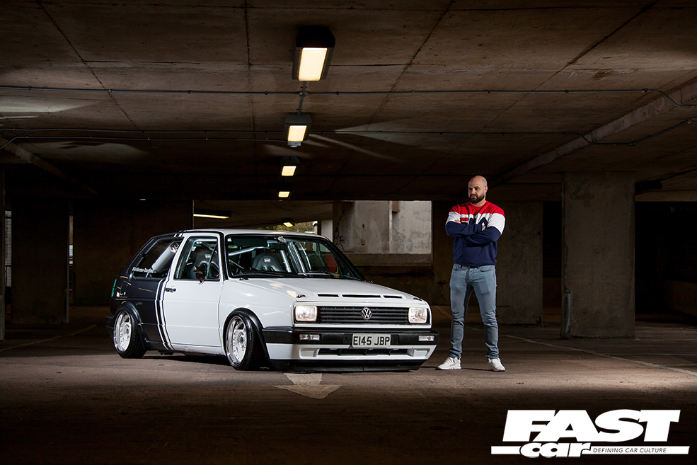 “I’ve had loads of cars over the years – Mk1 Golfs, Novas, R5 Turbos, a 309 GTi, an E30 BMW, a Supra, a Skyline, but never a Mk2 Golf,” explains Benny. “My bro-in-law is onto his dubs and suggested I get one, so that’s where it all started.” Having set out with noble intentions to keep it simple with lows and wheels, the urge to modify this ’80s Golf soon became too strong to resist. “The more I looked into new parts, the more ideas I had and it spiralled from there,” smiles Benny. With his dad’s garage available and a mate with a unit to stash car parts, it was only going to end one way.