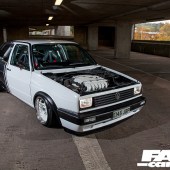 Here at FC we’ve featured some of the finest examples of old-school cool, from James Williams’ Hillman Imp on air-ride, to Pipey McGraw’s epic ‘Japuar,’ and retro goodness doesn’t get much better (or indeed cooler) than Benny Smith’s Mk2 Golf. Like a bratwurst with a topping of sushi, chugged down with a Budweiser, it’s a daring fusion of US, Euro and Japanese – guaranteed to upset the OEM+ purists.