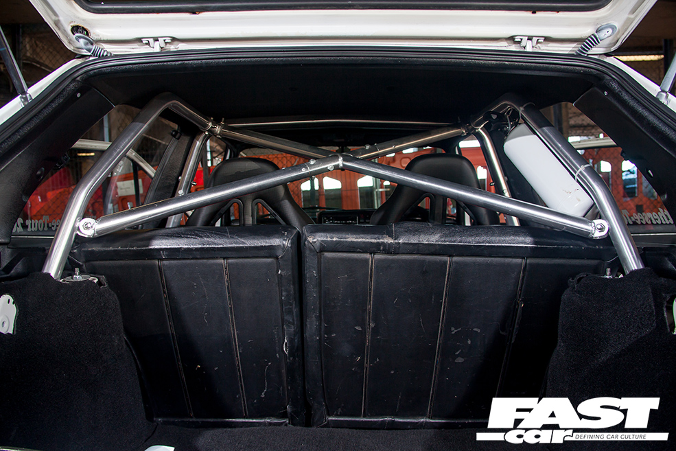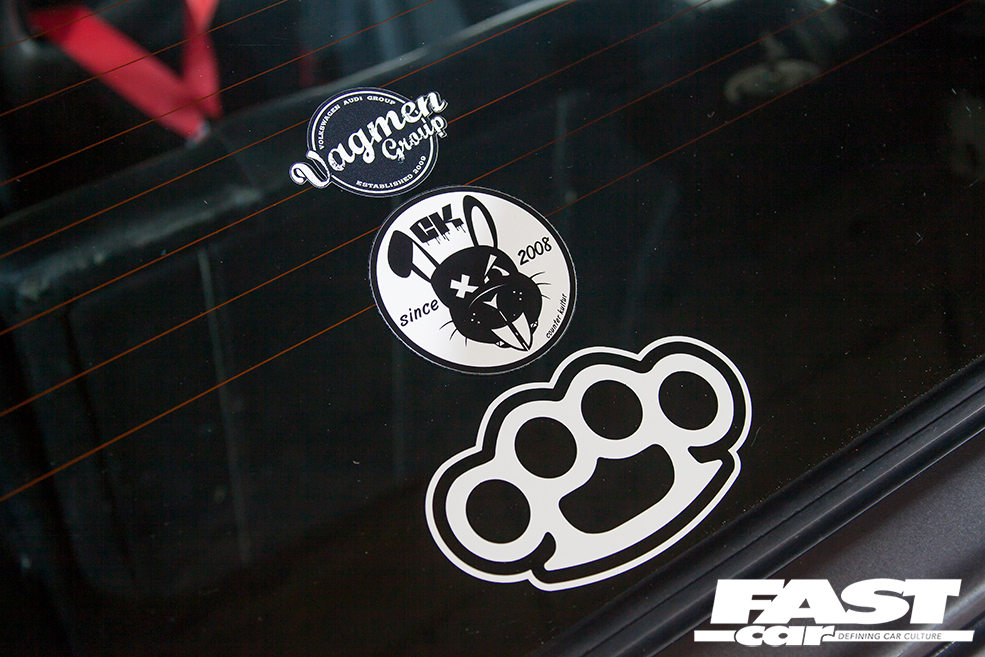 “The biggest challenge with the car was keeping the faith to see it through to the end. It literally went through a stage where every time I took it out, it broke down,” he laughs. But it gets worse: “One time, the engine actually fell out from running it too low, ripping the front cradle off.” Fortunately, the lads came to the rescue with a piece of wood across the wings and ratchet straps to hold the engine up so they could drive it home. “It was well dodgy as every time we went over a bump it tripped all the electrics off. Then there was the time an airline split on the way to a Vagmen show and my mate came and helped me change it on the side of the motorway. That was fun, ripping the seats out with lorries hammering past us, but somehow we made it to the show.”