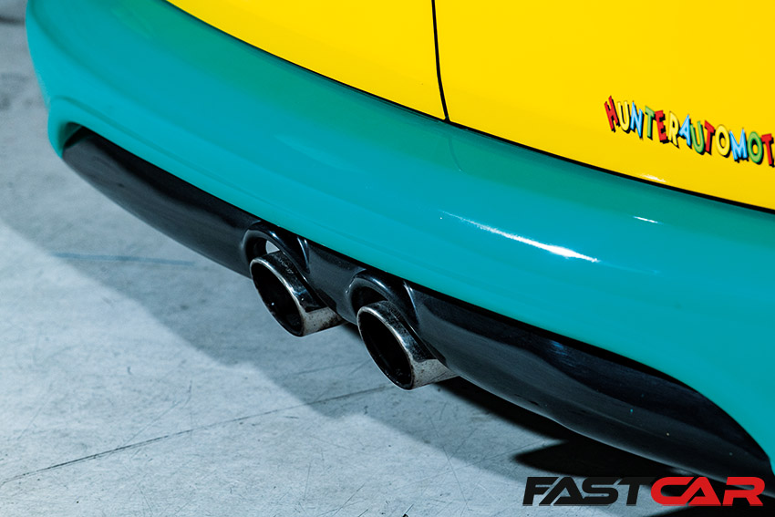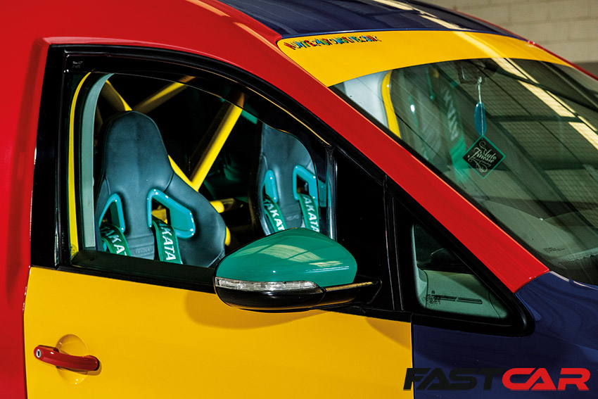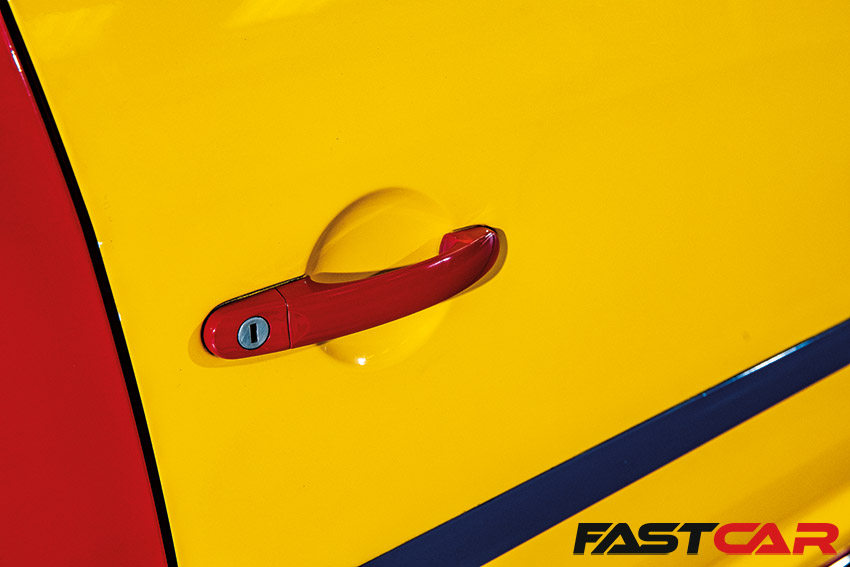 The base colour, i.e. the colour of the shell, would determine the colour of each panel. Paul went with a Tornado Red base but added his own touches outside of the factory formula with the colour of the roof, side skirts and front splitter. “I think I might have upset a few Harlequin purists,” he laughs. Who knew that was even a thing?!