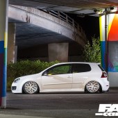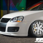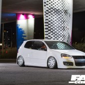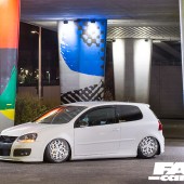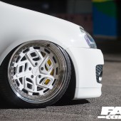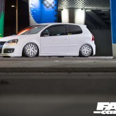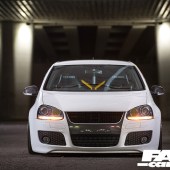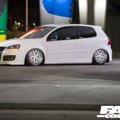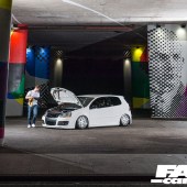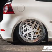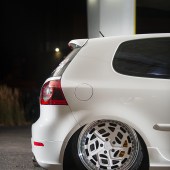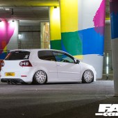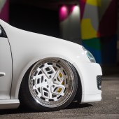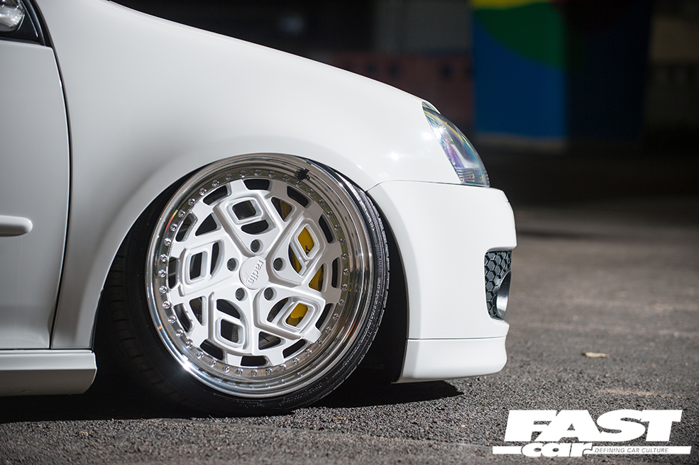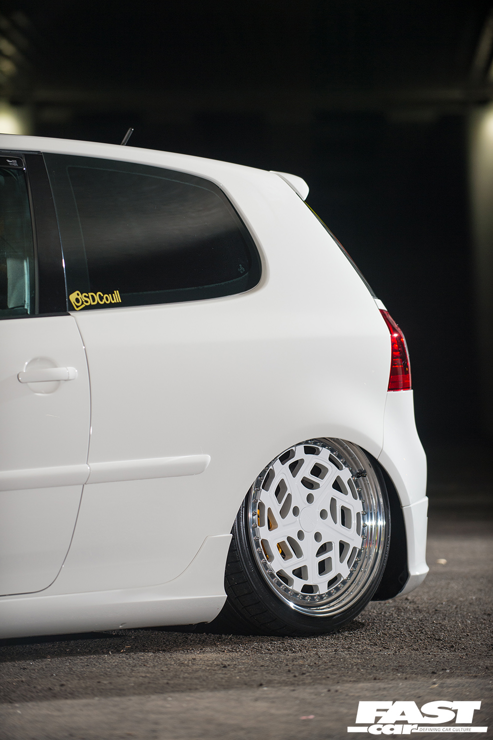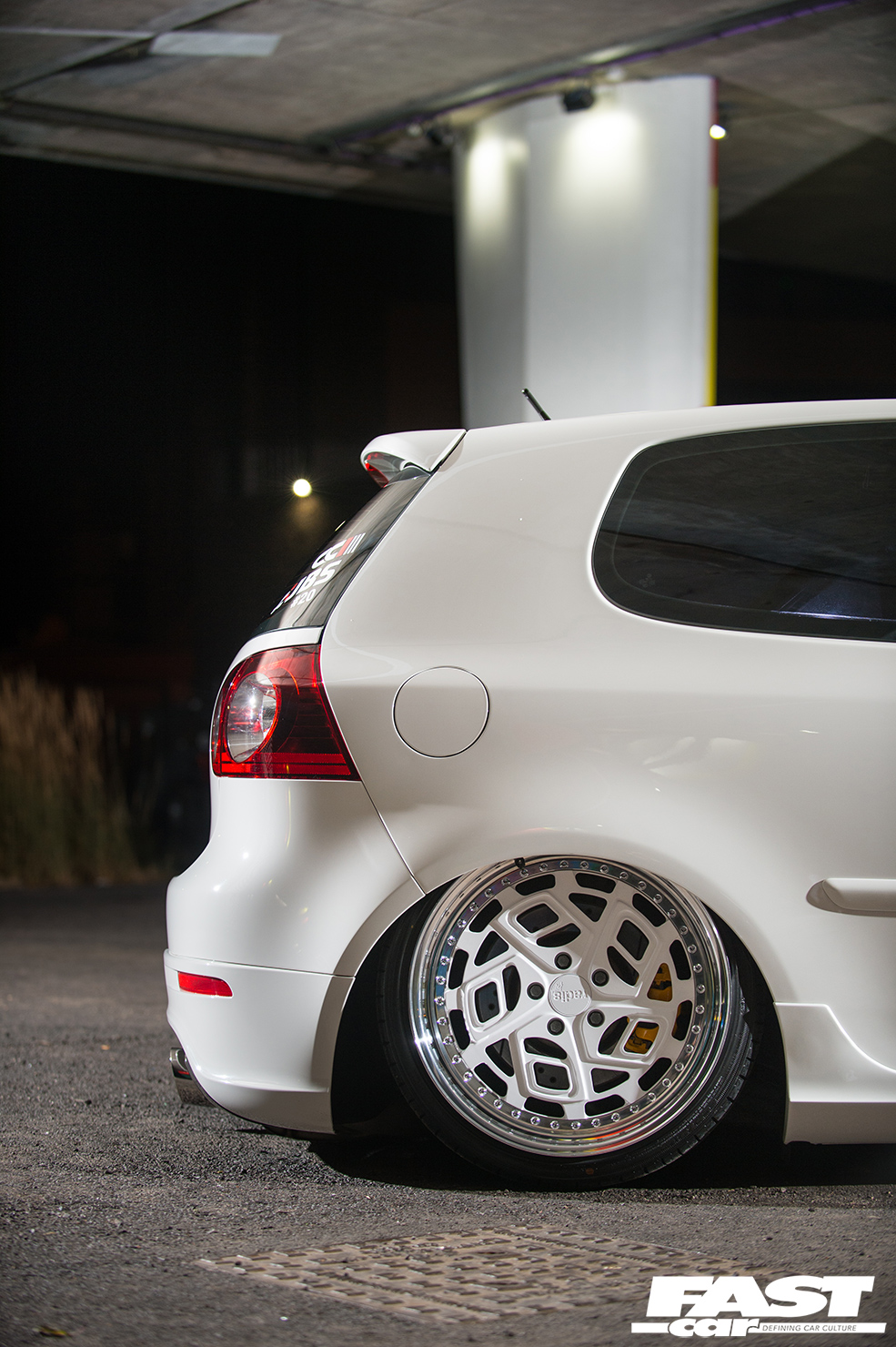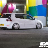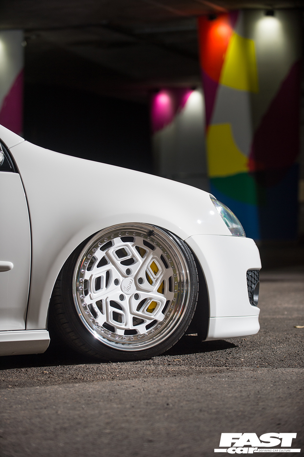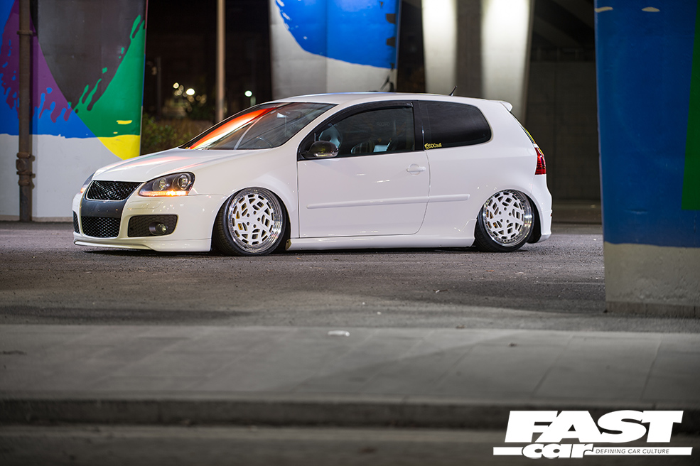 There are a lot of bagged Golfs on the scene today, but it’s immediately obvious Stuart’s fastidious build is a cut above the rest. While many cars on the showground follow the simple formula of bags-rims-done, this fella’s paid incredible attention to every single detail of the car, ensuring the performance matches the finish and the handling matches the performance.