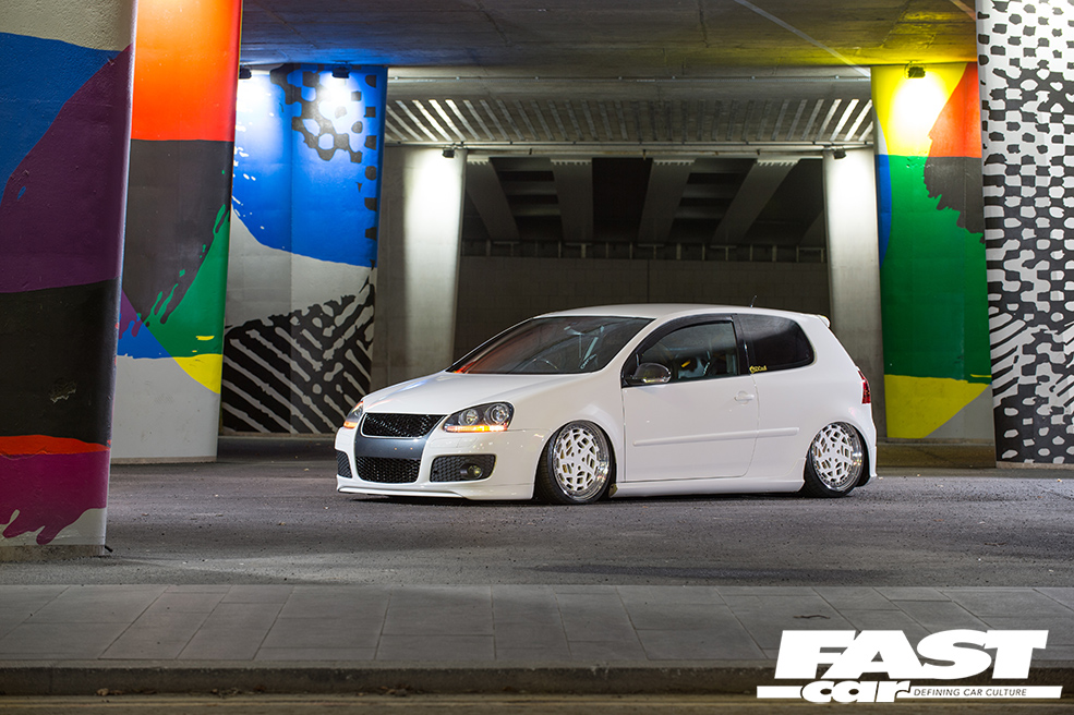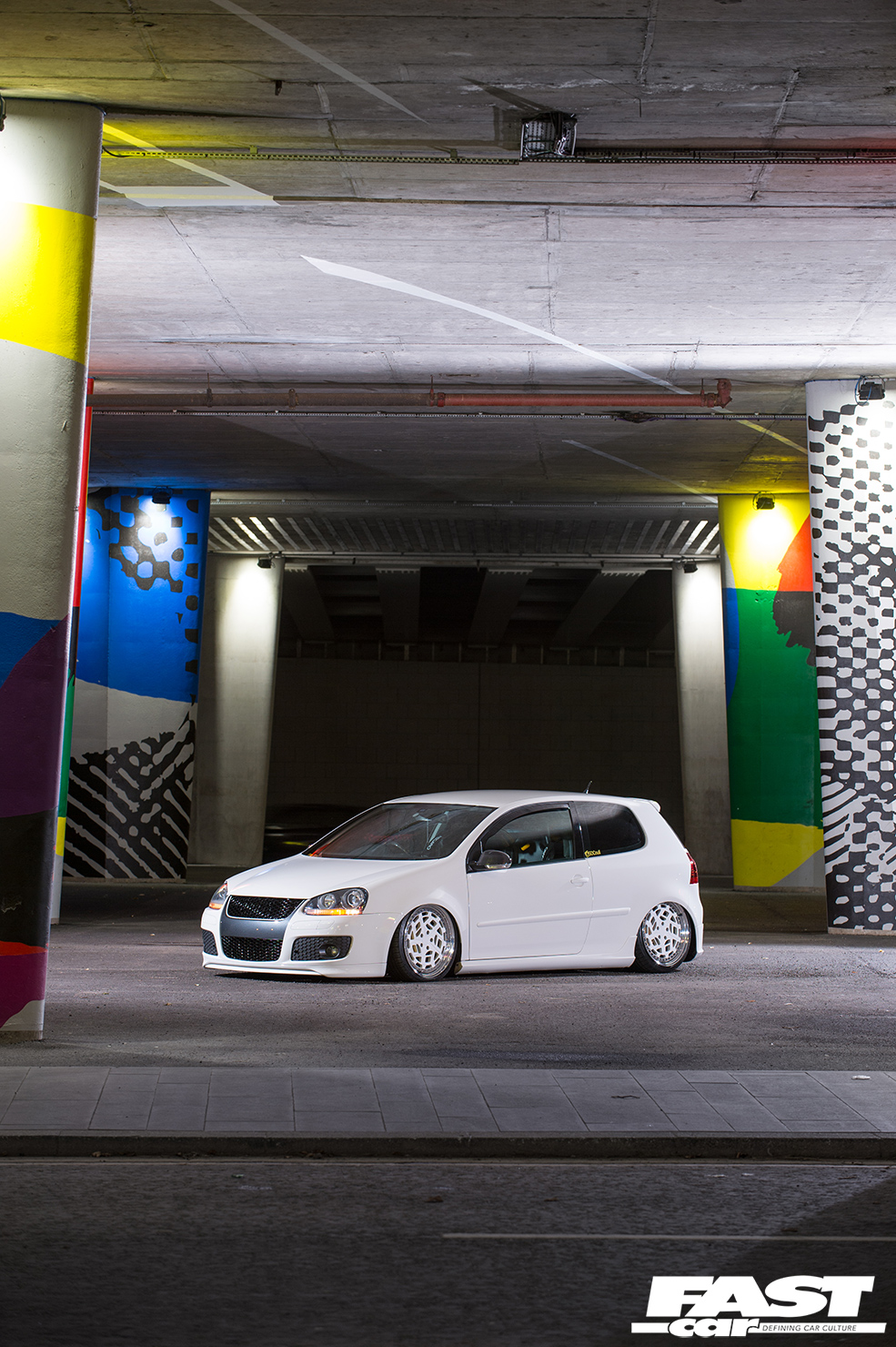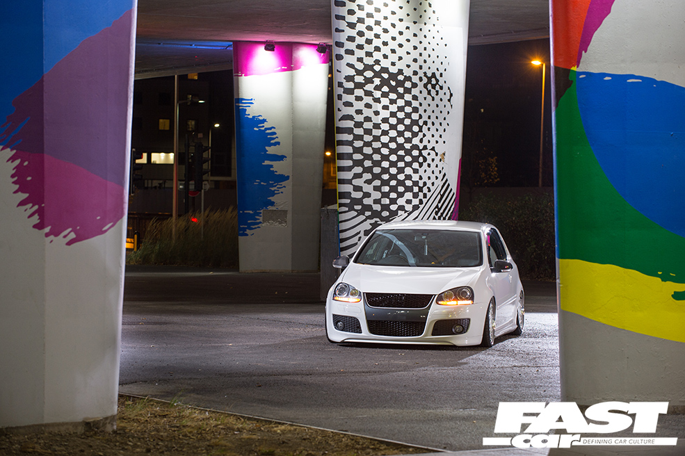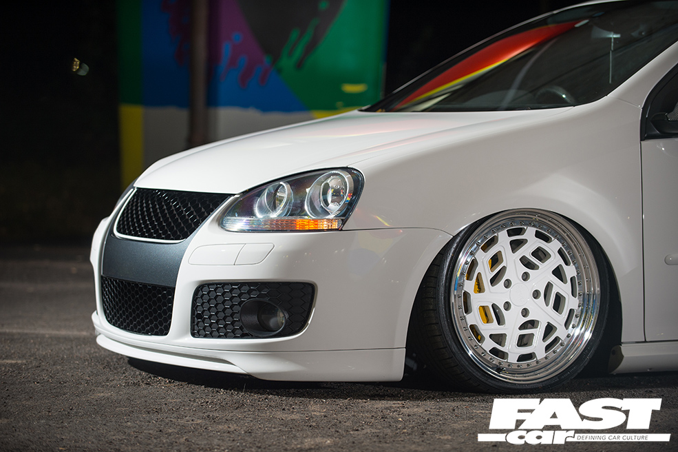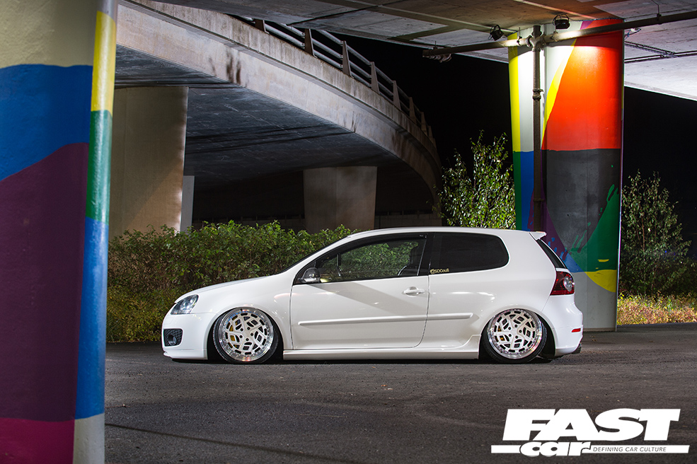 When Stuart Coull started this Edition 30 project, he was chasing big power with pioneering chassis upgrades. As time wore on, he shifted his affections to the show and shine scene. Now his Candy White Golf offers the best of both worlds…