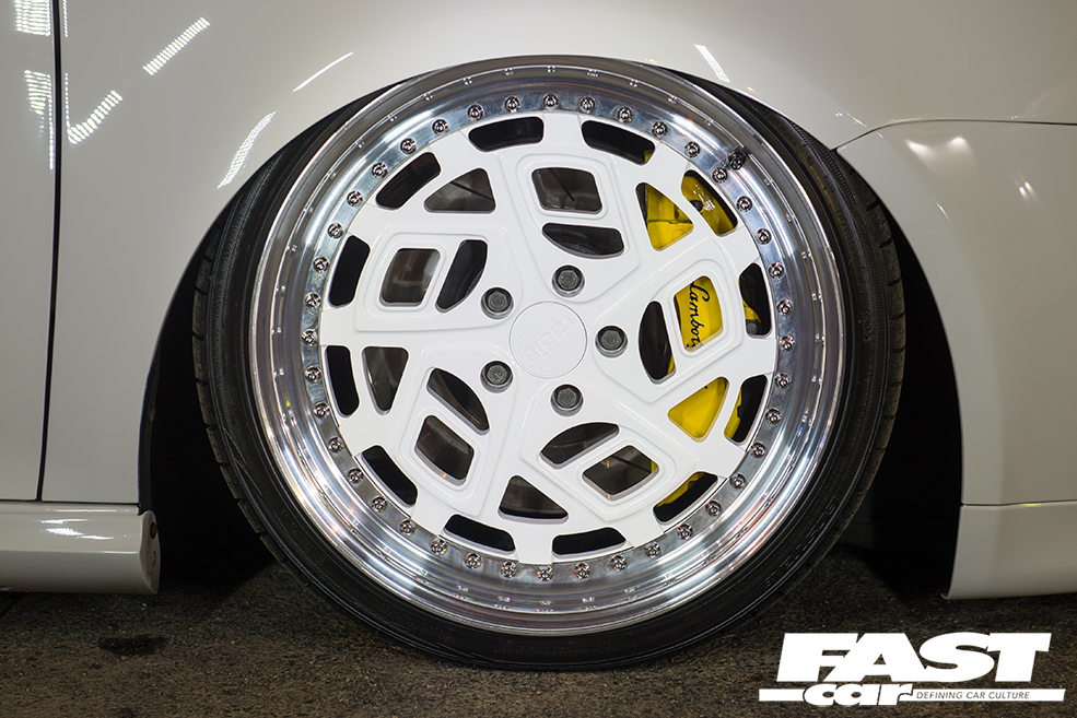 “And then of course there’s the brakes, the stupid brakes…” Those yellow Lamborghini callipers you see peeping out at the front represent the perfect fusion of Stuart’s project transition, providing the stopping gumption required by the huge horsepower, and the on-point aesthetics of the showground. But they were a total pain in the arse.